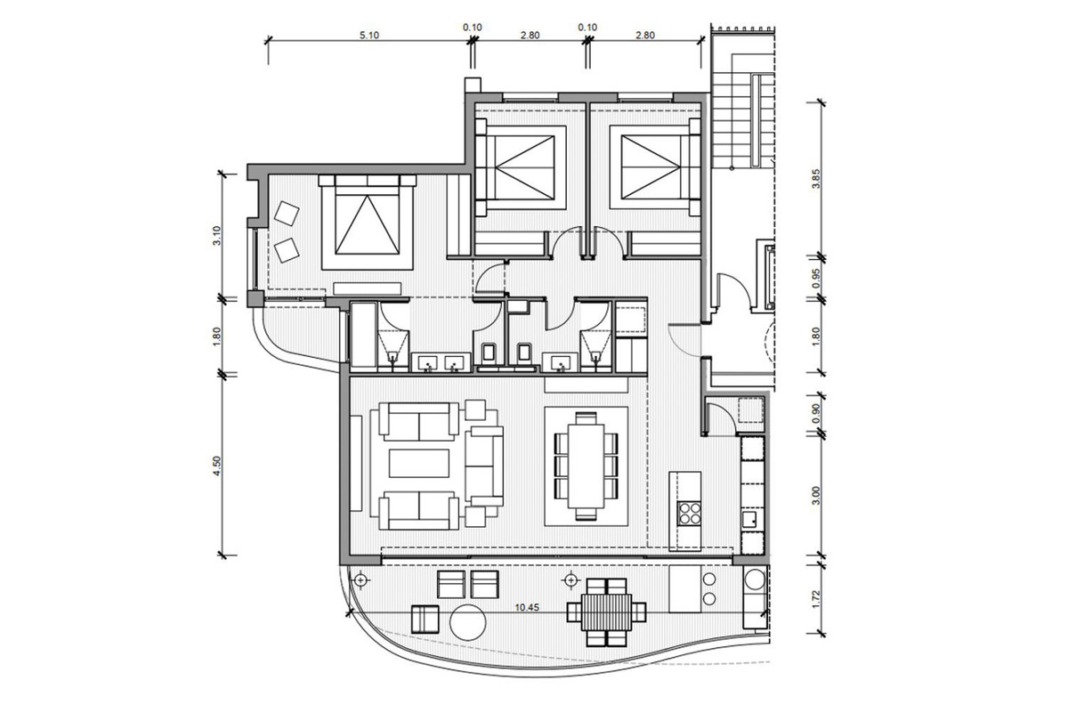 Nous vous proposons à la vente cet appartement moderne situé dans la ville côtière de Fuengirola, dans la province de Málaga. Situé au deuxième étage d'un immeuble résidentiel avec ascenseur, il offre une surface habitable de 120 m², répartie comme suit : 3 chambres (dont une suite parentale avec dressing et accès à une petite terrasse de 2,97 m²), un spacieux séjour/salle à manger, une cuisine américaine entièrement équipée avec des appareils Bosch, un espace buanderie avec lave-linge/sèche-linge et une grande terrasse de 26,89 m² offrant une magnifique vue panoramique sur la mer.