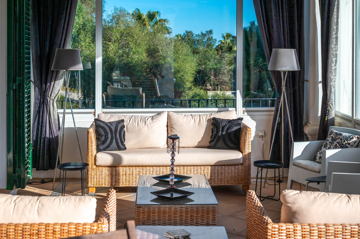 Pleine de charme et de caractère, la villa donne immédiatement le ton dès l'approche, à travers des haies impeccablement taillées menant à une magnifique porte d'entrée ancienne en bois. Une fois à l'intérieur, on découvre une superbe cour intérieure autour de laquelle s'articule toute la maison, inondant le rez-de-chaussée de lumière naturelle et reliant harmonieusement les espaces de vie. De là, la vue traverse la maison et s'étend jusqu'au-delà, offrant un panorama sur la végétation luxuriante environnante.