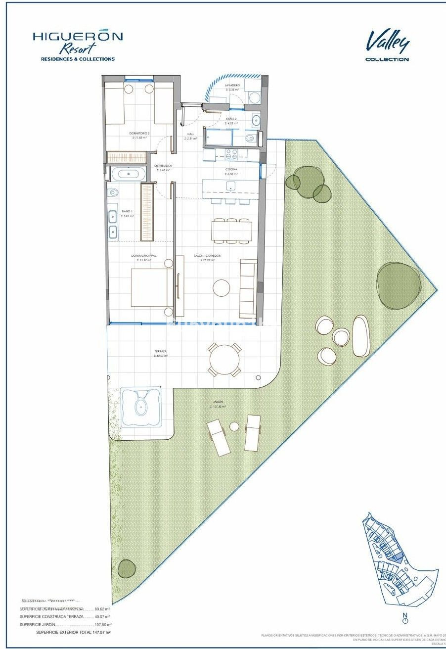 Découvrez cet élégant appartement de plain-pied, situé dans la prestigieuse Valley Collection, au sein du célèbre domaine Reserva del Higuerón. Un bien qui allie à la perfection design contemporain, confort et un cadre de vie exceptionnel en plein air. Cet appartement comprend deux chambres, deux salles de bains, un séjour lumineux et une cuisine américaine moderne, conçus pour optimiser la lumière naturelle et créer une transition fluide vers l'extérieur. Il est également équipé d'un système domotique, offrant confort et contrôle intelligent dans tout le logement. D'une surface construite totale de 237 m², la propriété se compose de 89 m² d'espace intérieur, d'une terrasse de 40 m² et d'un impressionnant jardin privé de 107 m² avec jacuzzi, idéal pour profiter du style de vie méditerranéen toute l'année, que ce soit pour se détendre ou recevoir. Située au sein d'une résidence bien entretenue, elle offre à ses habitants de magnifiques jardins paysagers et une piscine commune, le tout dans un environnement moderne et paisible. Le prix comprend également un parking souterrain et un local de rangement, ce qui ajoute au confort et à la praticité. Un choix idéal comme résidence principale, maison de vacances ou investissement dans l'un des quartiers les plus prisés de la Costa del Sol.