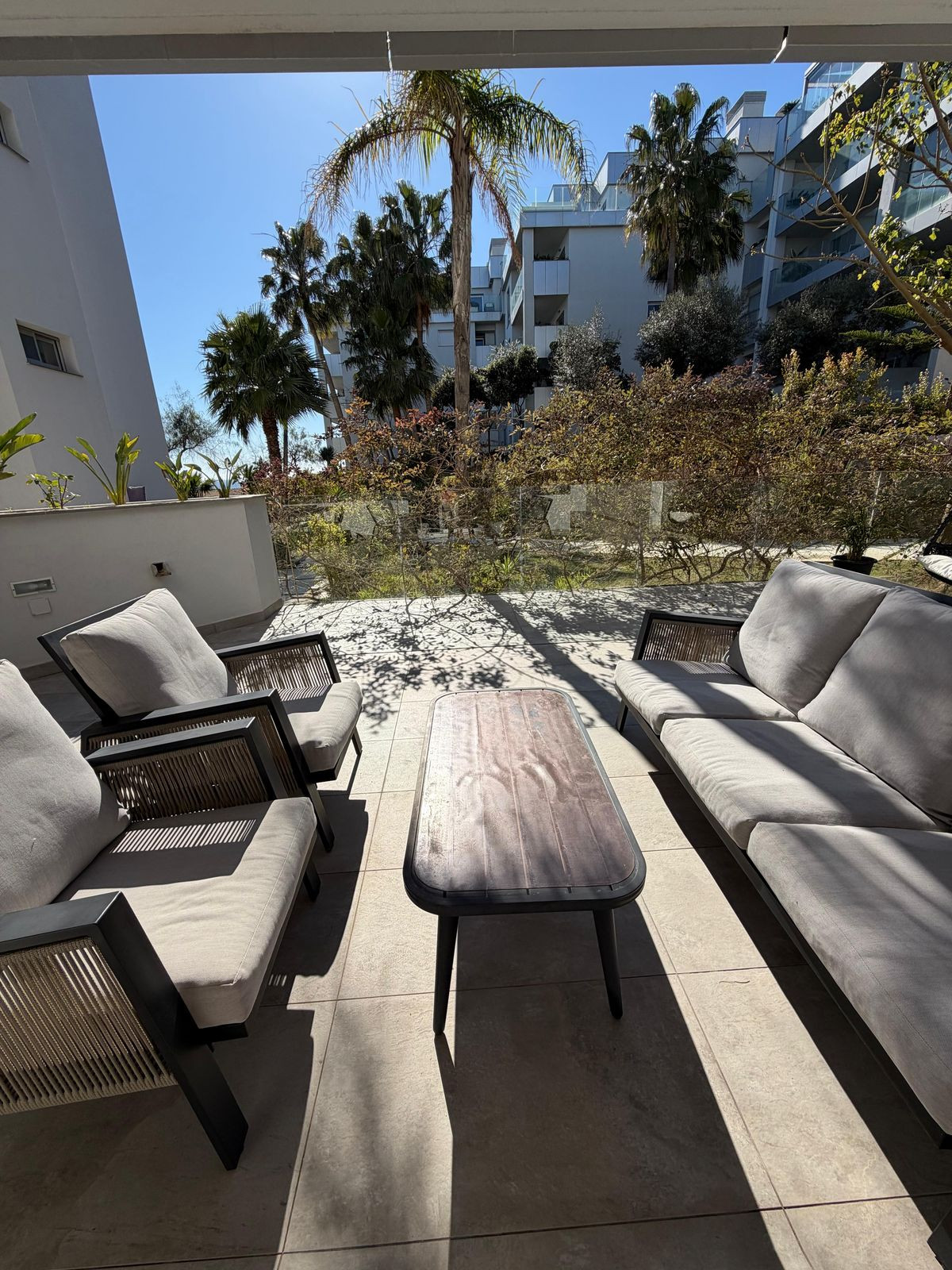 Cette propriété offre un agencement bien pensé avec 2 chambres et 2 salles de bains (dont une attenante), un espace de vie lumineux et un accès direct à de spacieux espaces extérieurs comprenant une terrasse couverte de 20 m² et une terrasse ouverte de 45 m², idéales pour profiter du style de vie méditerranéen.
