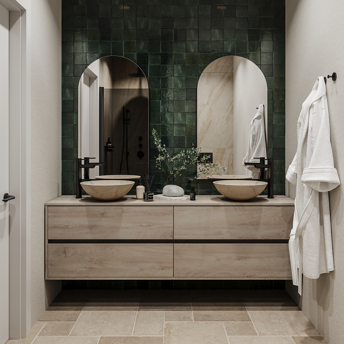 Chaque résidence est agencée avec soin sur deux ou trois niveaux, offrant un rythme naturel entre espaces de vie communs et espaces privés. De vastes intérieurs s'ouvrent harmonieusement sur jardins et terrasses, favorisant un mode de vie dedans-dehors empreint de lumière, d'ouverture et de confort.