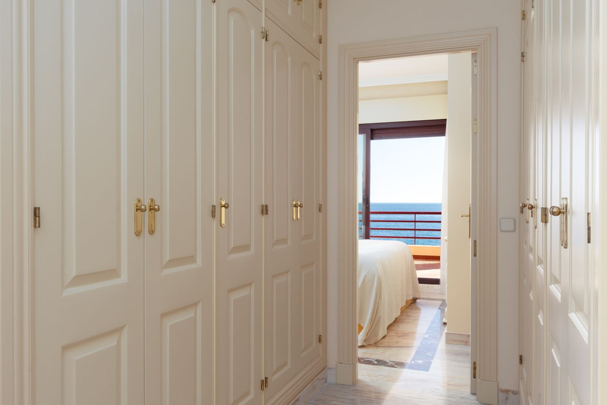 Ce complexe résidentiel sécurisé et bien entretenu offre un accès direct à la plage, vous permettant de marcher directement sur le sable depuis votre appartement. De plus, vous bénéficiez d'un accès immédiat à la promenade du front de mer, idéale pour les promenades matinales, le vélo ou pour admirer le coucher du soleil sur le littoral, le tout sans avoir besoin de voiture.
