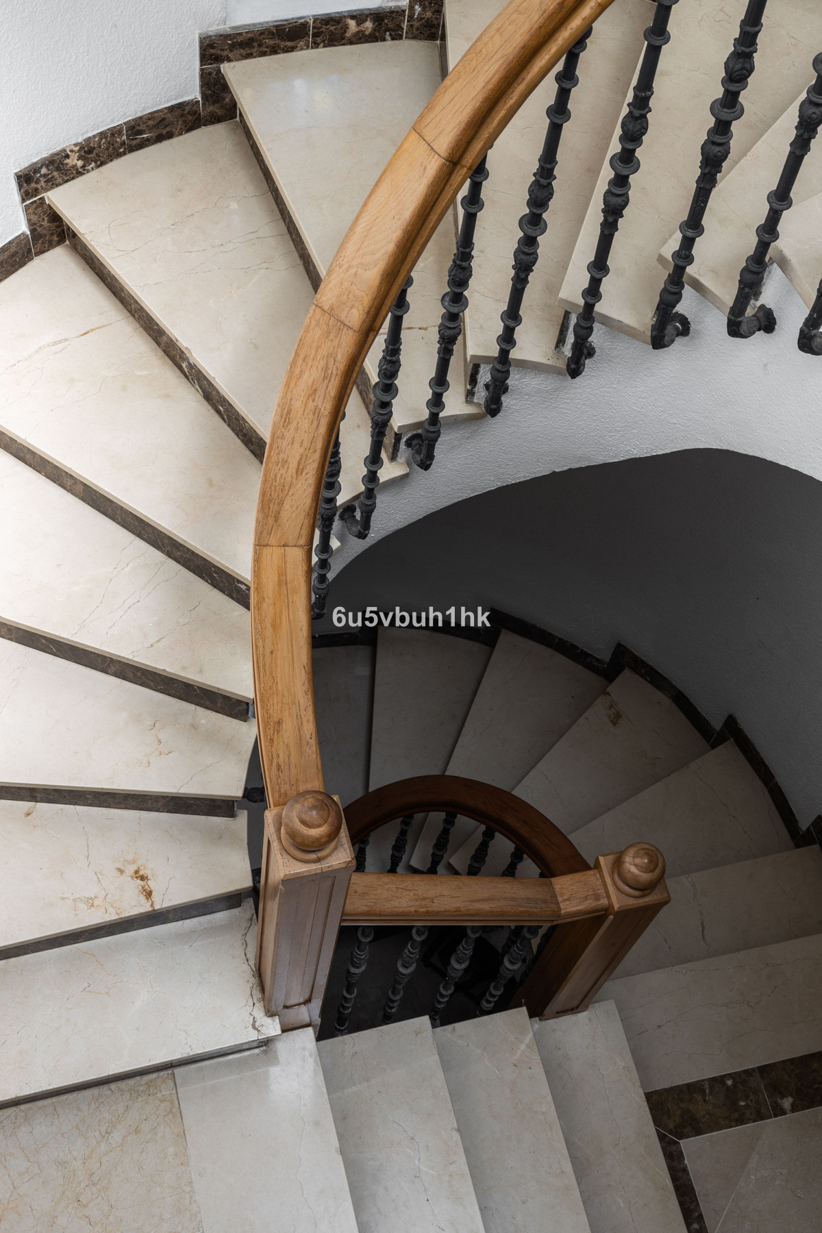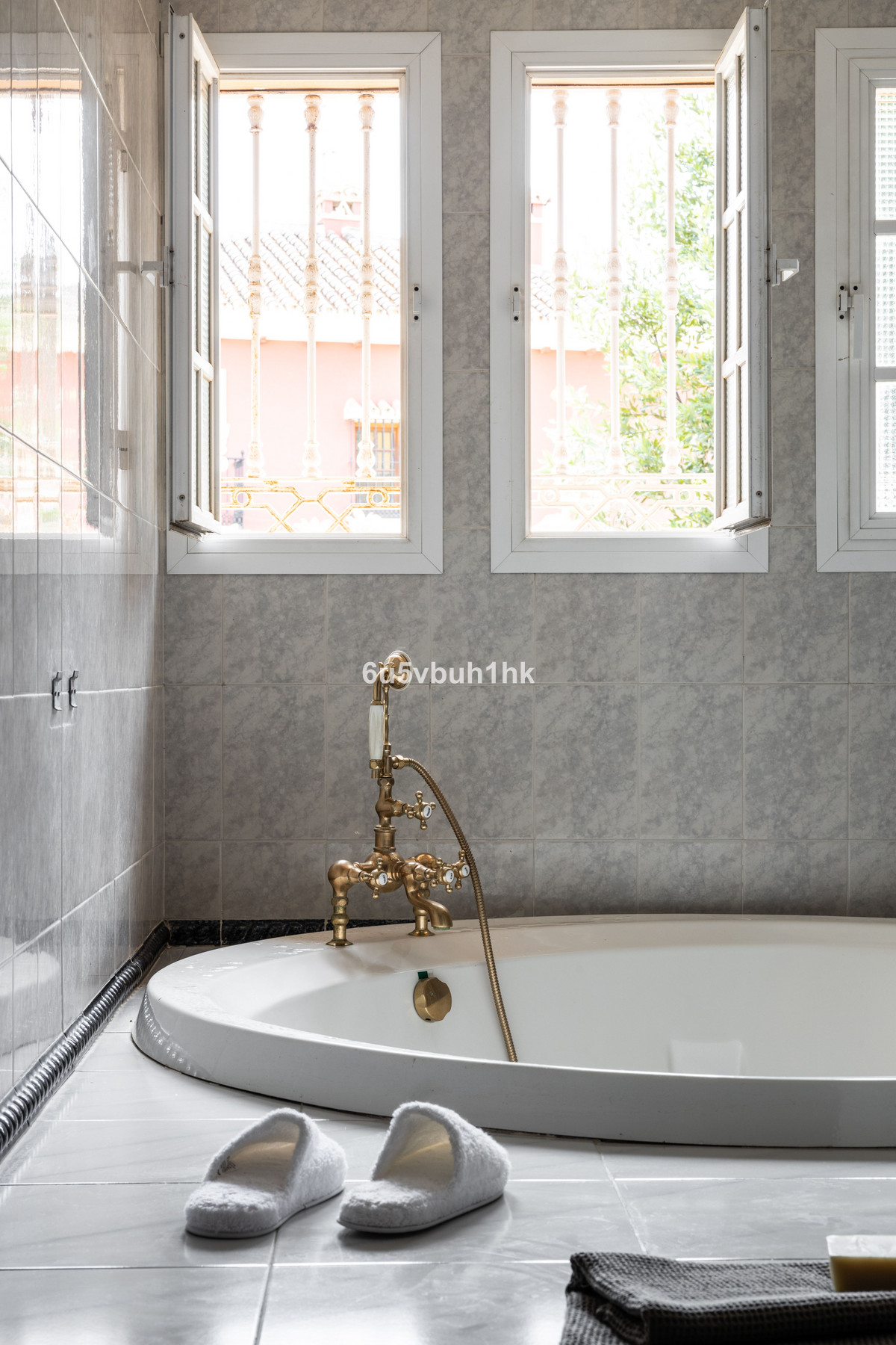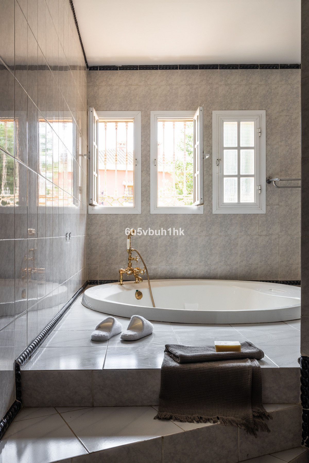 Cette luxueuse villa, dotée d'un magnifique jardin tropical et d'une piscine privée, est à voir absolument. Entièrement modernisée, elle est à vendre à El Coto, Fuengirola. En entrant dans la maison, vous découvrirez un vaste hall d'entrée qui s'ouvre sur un magnifique vestibule où se trouve l'escalier sur la droite. Au premier étage, vous trouverez une grande cuisine indépendante avec buanderie attenante, des toilettes invités, une salle à manger et un spectaculaire salon en L avec cheminée et de grandes baies vitrées donnant sur le jardin et la piscine. Le deuxième étage abrite quatre chambres spacieuses avec terrasses offrant de superbes vues. La suite parentale dispose d'une salle de bains privative avec dressing ; une salle de bains est également partagée. Le jardin comprend un espace barbecue, une terrasse et une pelouse arborée d'arbres fruitiers, ainsi qu'une piscine privée. Cette propriété dispose d'un garage double, d'un appartement indépendant pour les invités et d'une grande cave à vin au sous-sol. Idéale pour un investissement locatif ou une famille, elle se situe à proximité immédiate de toutes les commodités : supermarché, pharmacie, restaurant et commerces. Parfaite pour y vivre à l'année ou pour les vacances, elle offre un excellent potentiel locatif.