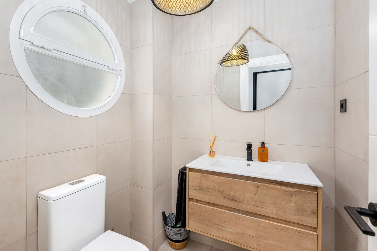Cette propriété prête à emménager comprend un grand espace ouvert cuisine-salon-salle à manger menant à une terrasse couverte lumineuse et chaleureuse, avec vue sud-sud-ouest sur la chaîne de montagnes d'Alhaurín Golf, Barranco Blanco et au-delà.