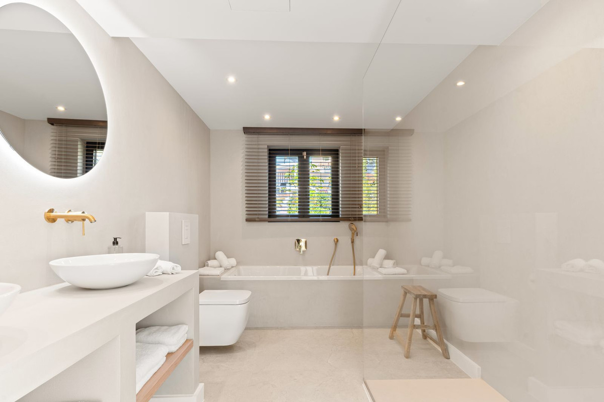 Accessible par une allée privée, la propriété dégage d'emblée chaleur, exclusivité et confort raffiné. À l'intérieur, la villa propose quatre chambres spacieuses avec salle de bains privative et une rénovation complète de grande qualité, réalisée par un promoteur local renommé. L'ensemble des espaces a été repensé, réaménagé et l'intérieur, sophistiqué et intemporel, offre un style unique.
