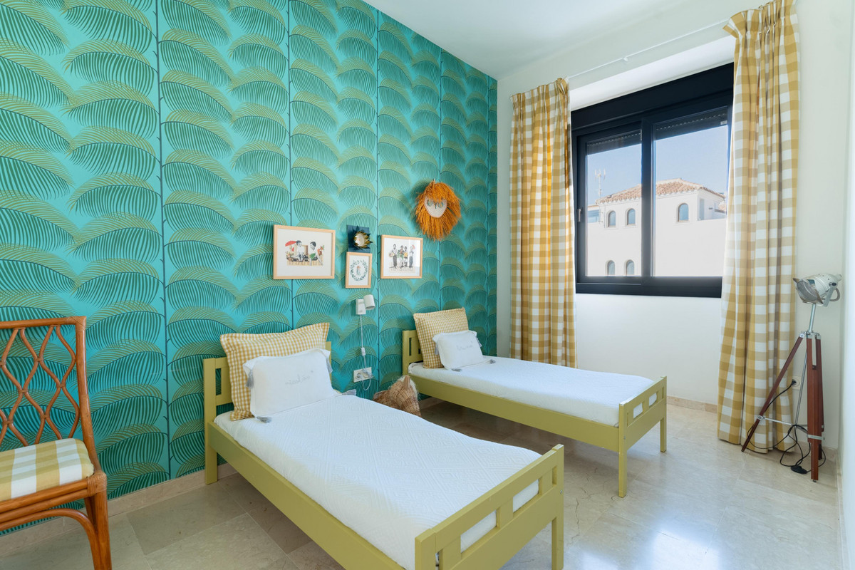 Discover a unique property that redefines the concept of a family home east of Málaga. Situated within a quiet residential urbanization right on the golf course, this townhouse stands out for its full renovation that prioritizes space, natural light, and a curated aesthetic. From the elegant hallway decorated with designer wallpaper to the soaring high ceilings, every detail has been thoughtfully chosen to create a cozy, modern atmosphere that feels like home the moment you enter.