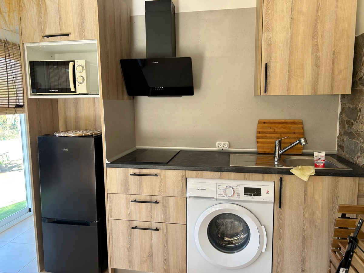 Depuis les vastes terrasses qui entourent la propriété, un magnifique et large escalier en pierre descend vers l'espace piscine (avec pergola hawaïenne et parasol, cuisine d'été avec barbecue en pierre, grand jacuzzi 5 places, douche et WC) et l'appartement privé, un véritable petit bijou pour des séjours entre amis ou en famille, ou à louer. Ce charmant studio de 30 m², décoré dans un style balinais/polynésien, comprend une salle de bain avec une grande douche, une cuisine ouverte, un séjour avec un canapé-lit deux places et un coin nuit avec un lit deux places. La terrasse autour de la piscine (5 x 10 mètres) est idéale pour profiter des chaudes journées d'été et des douces soirées à la belle étoile. Un espace planté de citronniers, parfait pour créer un potager, entoure également la piscine.