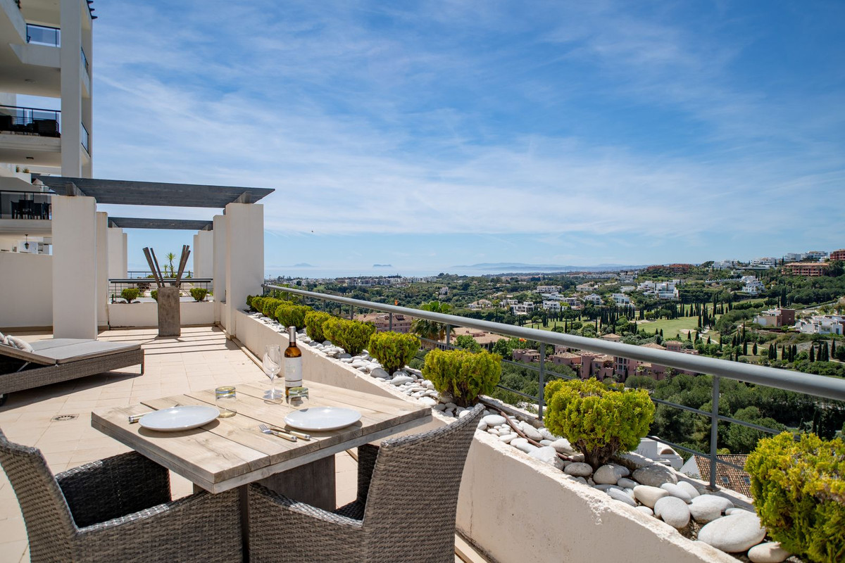 Parmi les autres atouts, citons un grand cellier inclus dans le prix et trois garages privés spacieux, pouvant accueillir une voiturette de golf. Ce complexe résidentiel bien entretenu offre une superbe piscine, des courts de padel et une vue imprenable sur le parcours de golf et l'hôtel Anantara, faisant de cette propriété un véritable joyau pour les passionnés de golf et d'art de vivre. La vue exceptionnelle sur Gibraltar et le Maroc est un atout majeur.