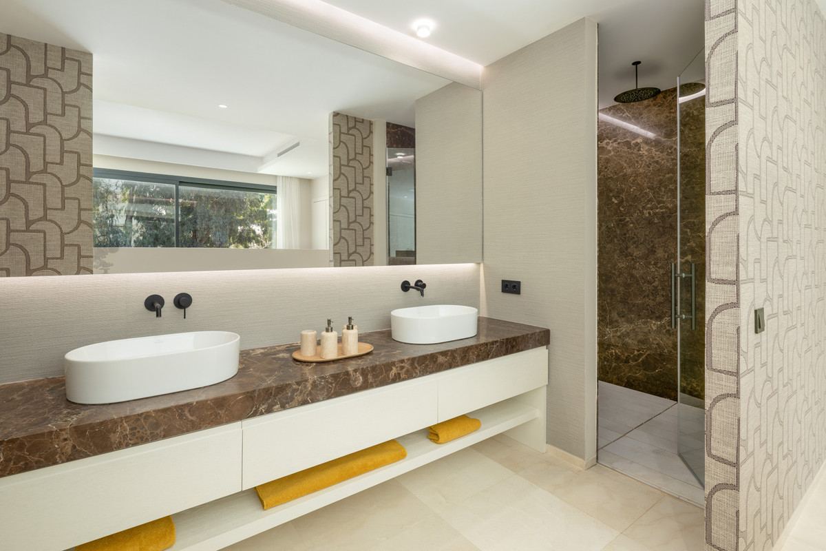 Située dans le quartier résidentiel exclusif de La Cerquilla, cette villa neuve d'exception est un modèle de luxe contemporain. Répartie sur quatre niveaux agencés avec soin, elle offre cinq chambres spacieuses et sept salles de bains élégamment aménagées. Une entrée majestueuse à double hauteur confère d'emblée une impression de grandeur, inondant la maison de lumière naturelle et donnant le ton à des intérieurs raffinés. La pièce de vie principale, agrémentée d'une cheminée élégante, s'ouvre harmonieusement sur une cuisine américaine, conçue aussi bien pour le quotidien que pour recevoir avec raffinement. La propriété bénéficie également d'un système domotique de pointe et d'un système de renouvellement d'air automatique performant, garantissant un confort optimal, une efficacité énergétique maximale et une qualité d'air irréprochable.