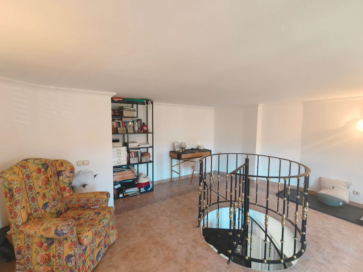 À l'étage, vous trouverez deux chambres spacieuses, chacune avec sa propre salle de bains et ses placards intégrés. Depuis l'une des chambres, un escalier en colimaçon mène à une troisième pièce polyvalente. Idéale comme chambre supplémentaire, bureau, salle de sport ou espace créatif adaptable à votre style de vie.