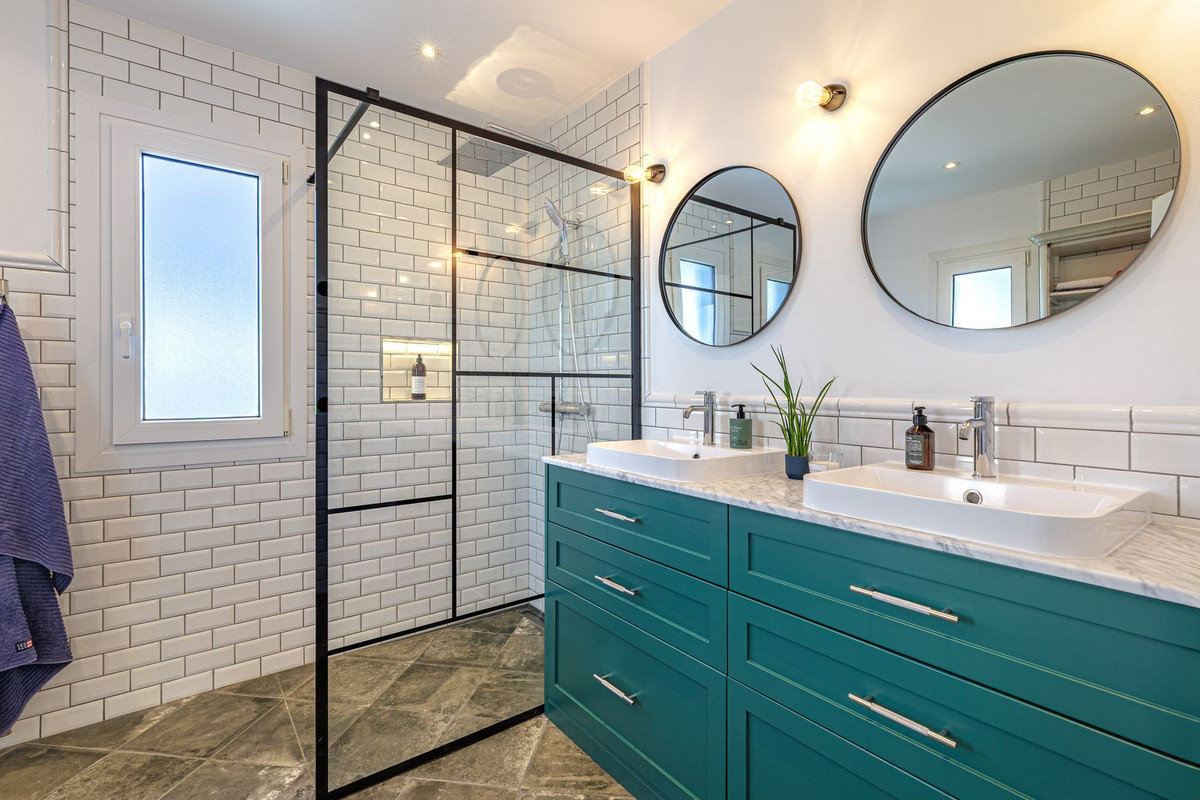 À l'intérieur, un agencement épuré et ouvert relie la cuisine et le séjour, où de larges portes vitrées estompent la frontière entre intérieur et extérieur tout en inondant la pièce de lumière naturelle. L'intérieur, au style moderne et harmonieux, dégage une élégance intemporelle.