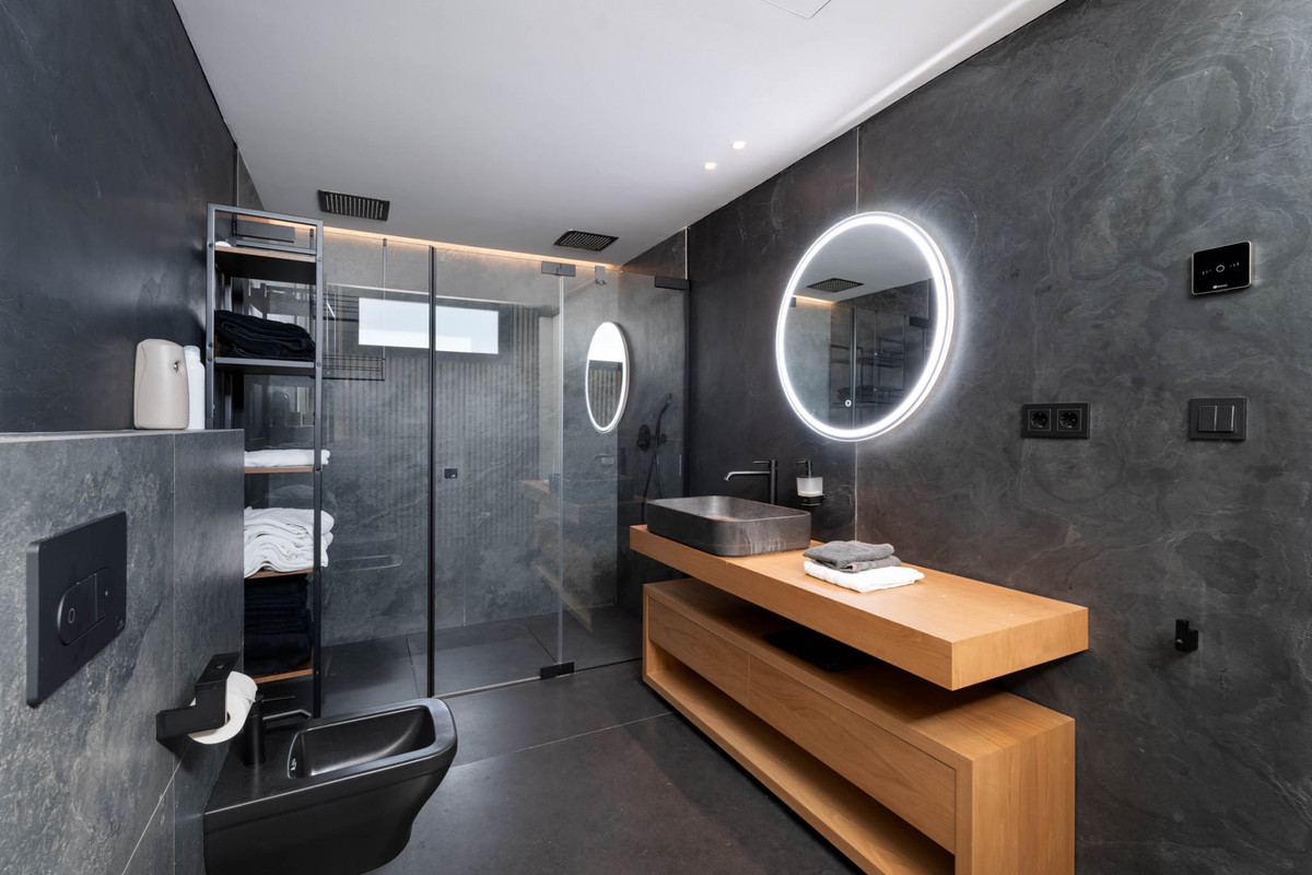 Équipements : Terrasse couverte, Ascenseur, Placards intégrés, Terrasse privée, Solarium, Wi-Fi, Salle de sport, Sauna, Salle de jeux, Appartement d'invités, Salle de bains privative, Sol en marbre, Jacuzzi, Barbecue, Double vitrage, Domotique, Sous-sol, Fibre optique