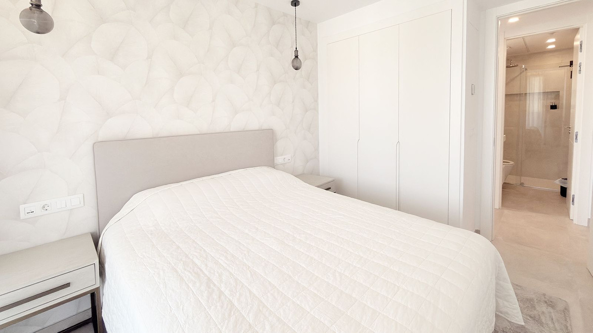L'appartement vous accueille dans un espace de vie lumineux et ouvert, où de larges baies vitrées coulissantes laissent entrer la lumière naturelle. L'intérieur se prolonge harmonieusement sur une remarquable terrasse en L de près de 55 mètres carrés, conçue comme un véritable prolongement de l'habitation. Soigneusement aménagée en espaces distincts, elle offre un salon extérieur raffiné, un coin repas spacieux et un espace supplémentaire pour se détendre en toute intimité. De là, la vue s'ouvre sur la mer, tandis que l'aile gauche capture la présence des montagnes, créant une impression de profondeur et de perspective unique. Dominant un charmant paysage urbain de toits traditionnels, de palmiers et de larges avenues menant directement au littoral, l'atmosphère y est à la fois vivante et sereine.