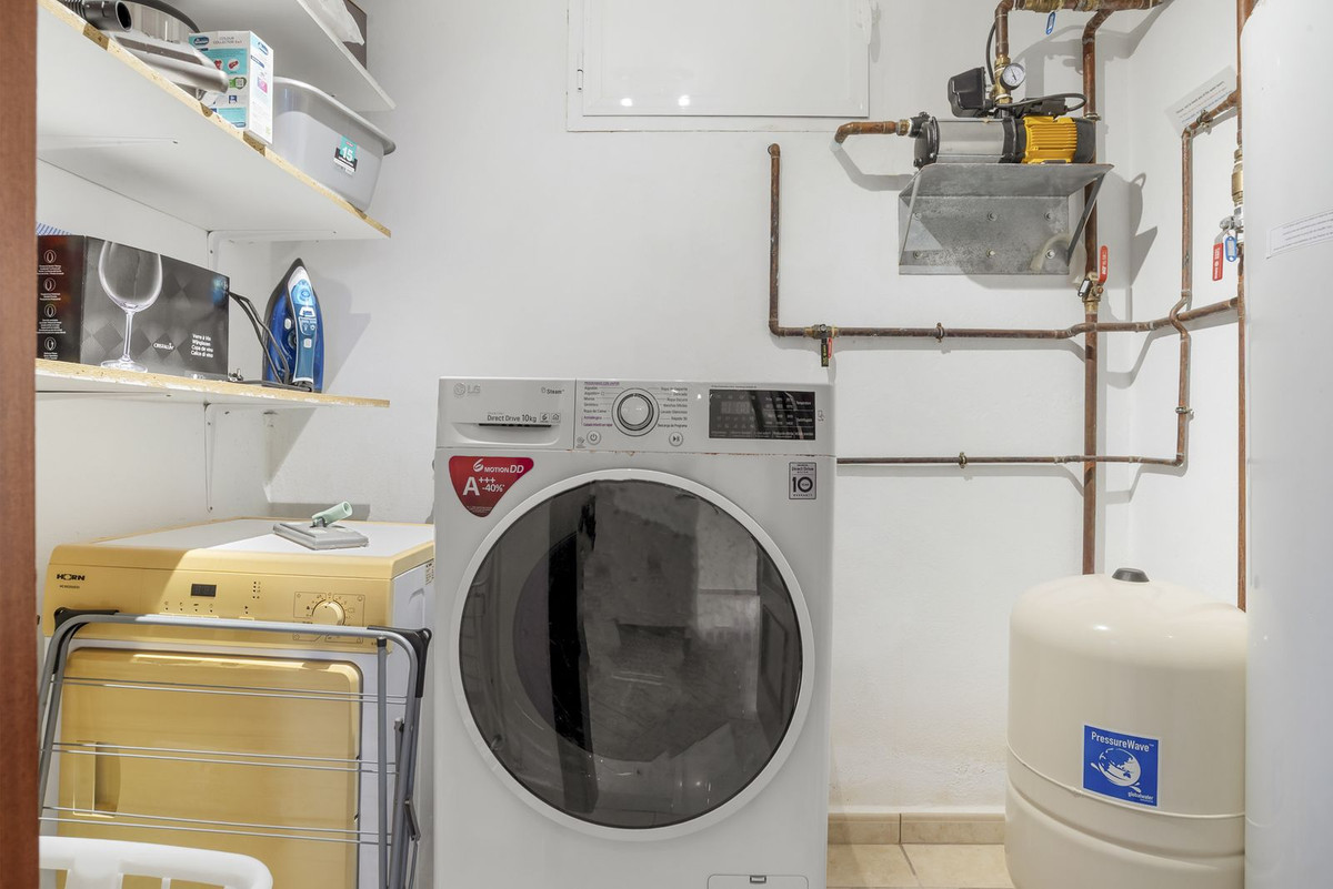 Cette charmante villa individuelle est située à Jardines del Aguila, à seulement 5 minutes en voiture de Fuengirola et à 6 minutes de La Cala de Mijas.
