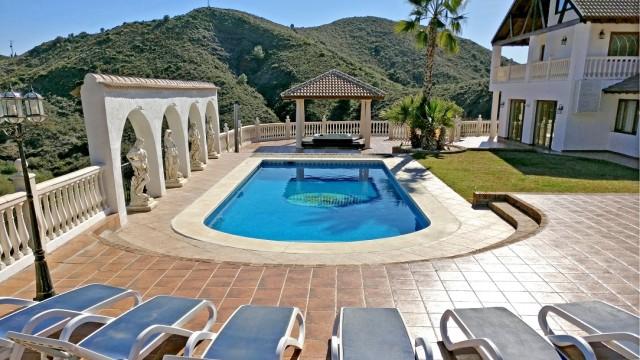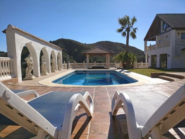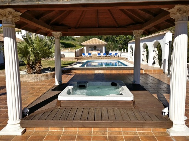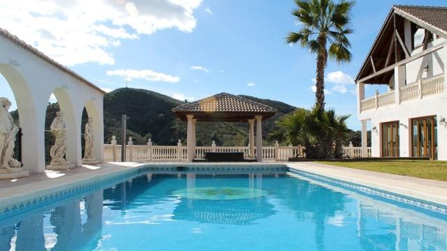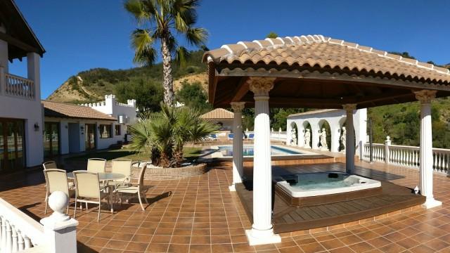 Villa de 700m2 à vendre à Mijas Costa: dispose d´un salon avec cheminée, salle à manger, 5 chambres, 5 salles de bains, une cuisine et des terrasses. Appartement indépendant de 2 chambres. Piscine climatisée. Jacuzzi. Garage. Stable. Terrain: 62.000m2.