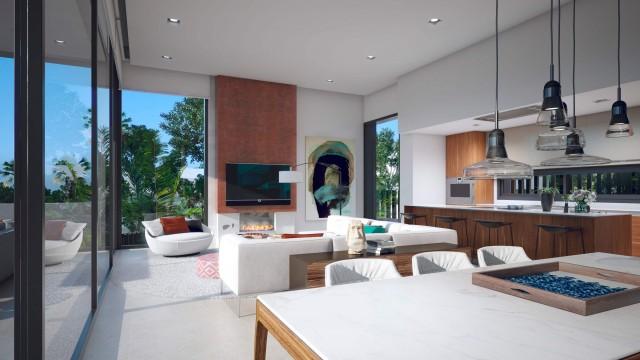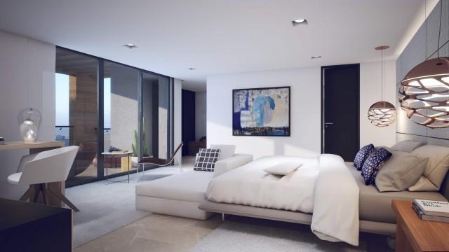 caractéristiques Fenêtres en aluminium, construction de haut standing, Style contemporain, Sol radiant, Plafonds hauts, Vue mer, Fenêtres de sécurité, chauffage radiant.