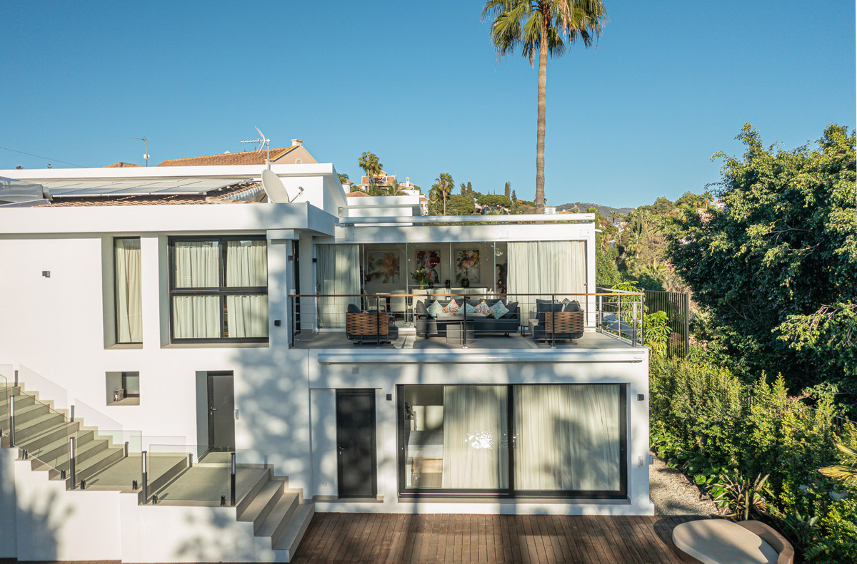 Presenting an exceptional villa in the sought-after El Rosario Urbanization on the esteemed Costa del Sol. This meticulously renovated property epitomizes luxury and stands as one of the premier residential areas on the eastern side of Marbella.