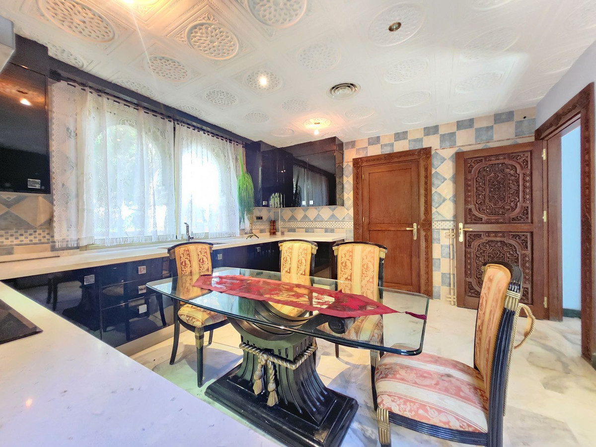 Just 300 meters from the sea, this magnificent villa blends Andalusian Nazarí-modern design, combining luxury and tradition. Its privileged south-facing orientation ensures sunlight throughout the day, illuminating the garden and pool area.