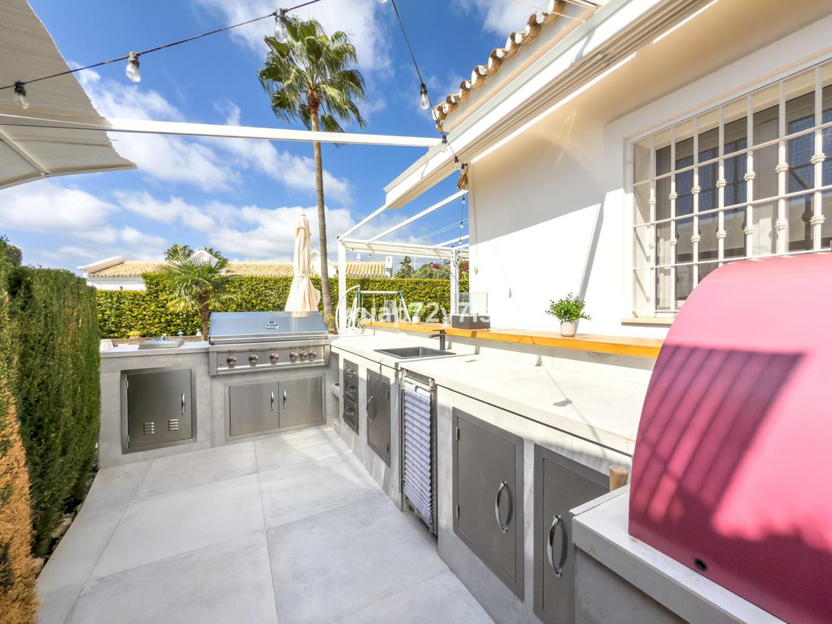 The outdoor areas of the property are exceptional, featuring a private swimming pool and various terraces where you can enjoy spectacular open views to the sea, the surrounding hills, and the majestic La Concha mountain. There is a professionally equipped outdoor kitchen with a barbecue and real pizza oven, ideal for alfresco dining and entertaining. A ping pong table and multiple seating areas add to the relaxed and social atmosphere.