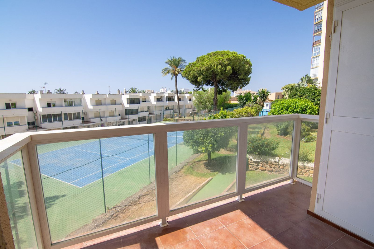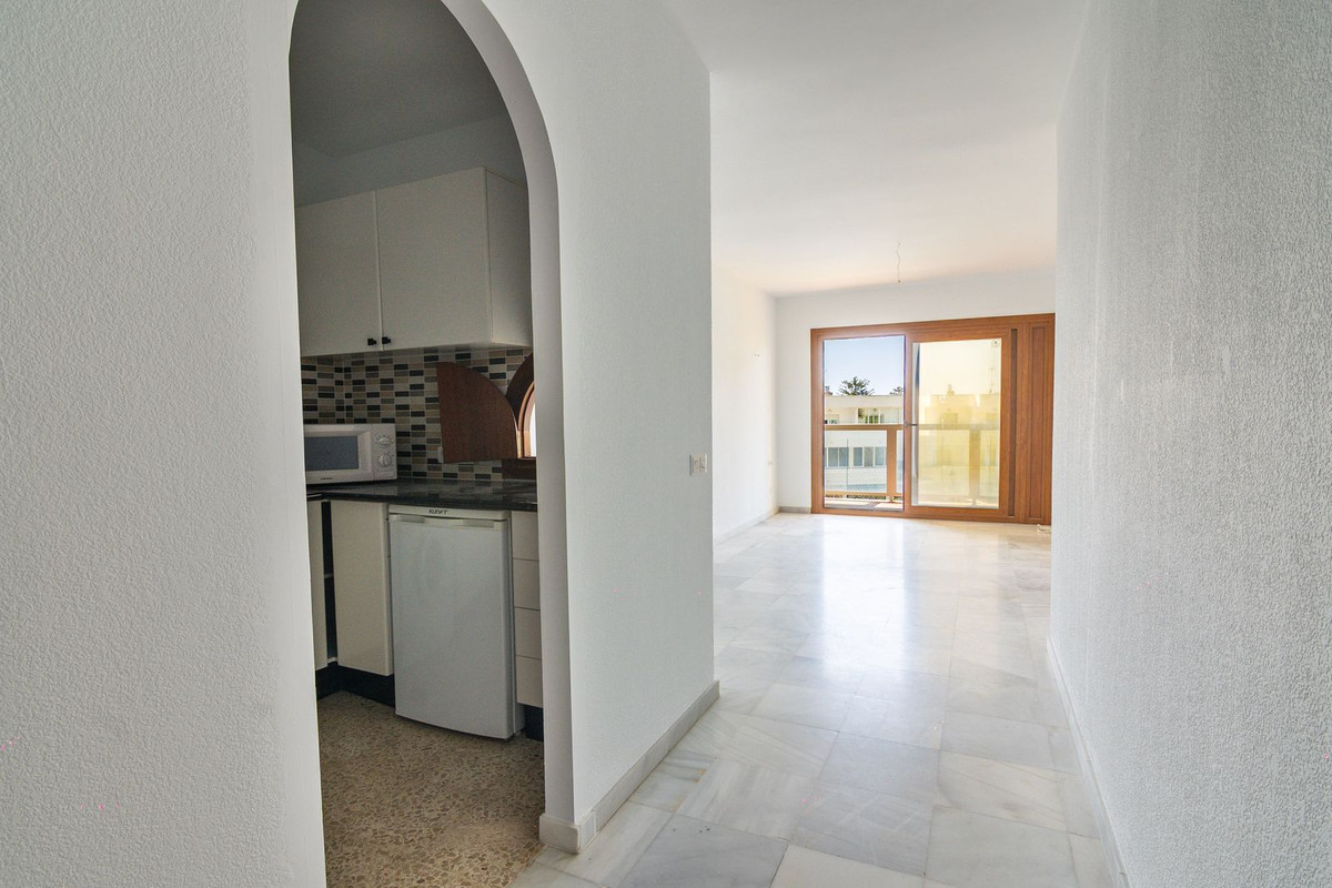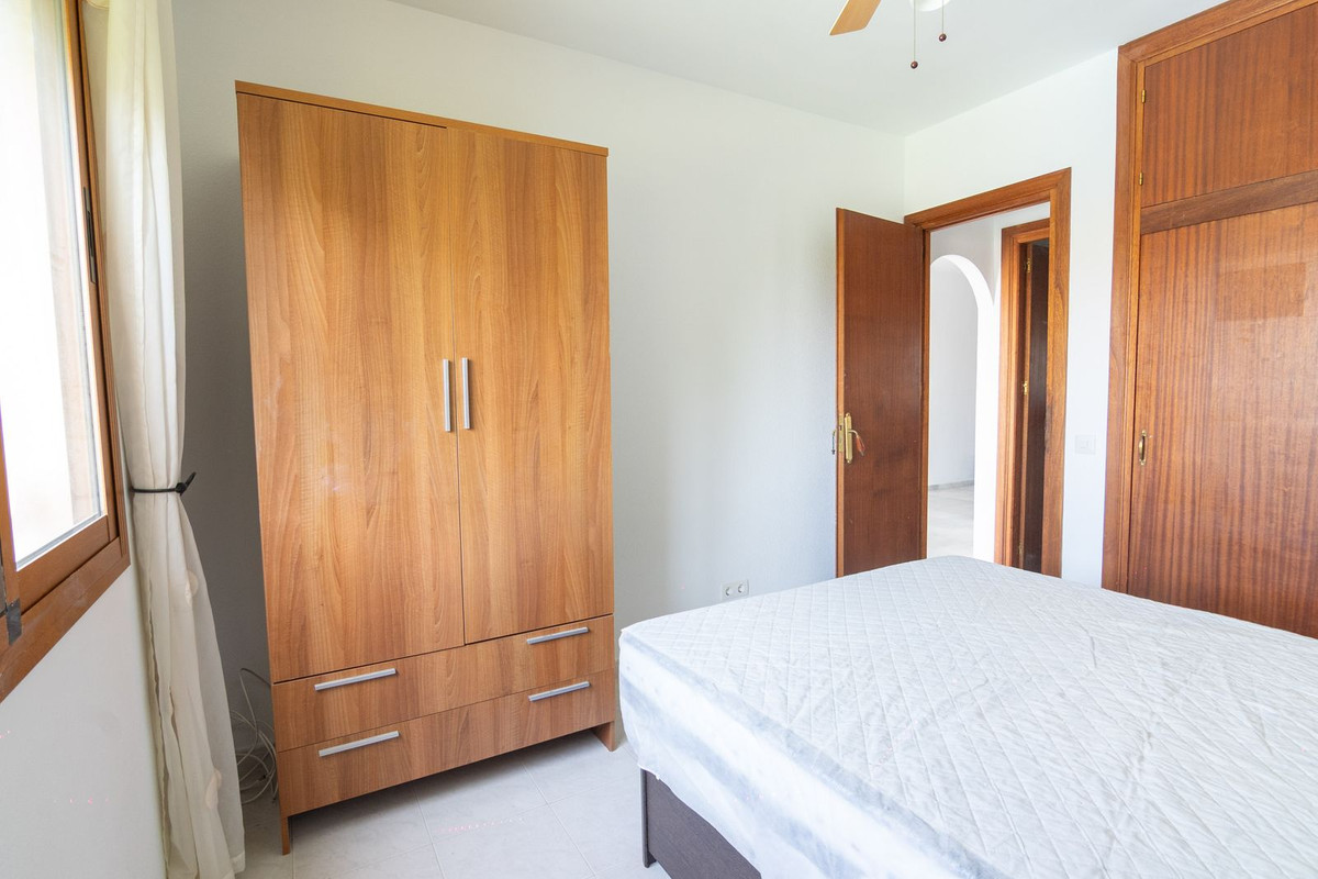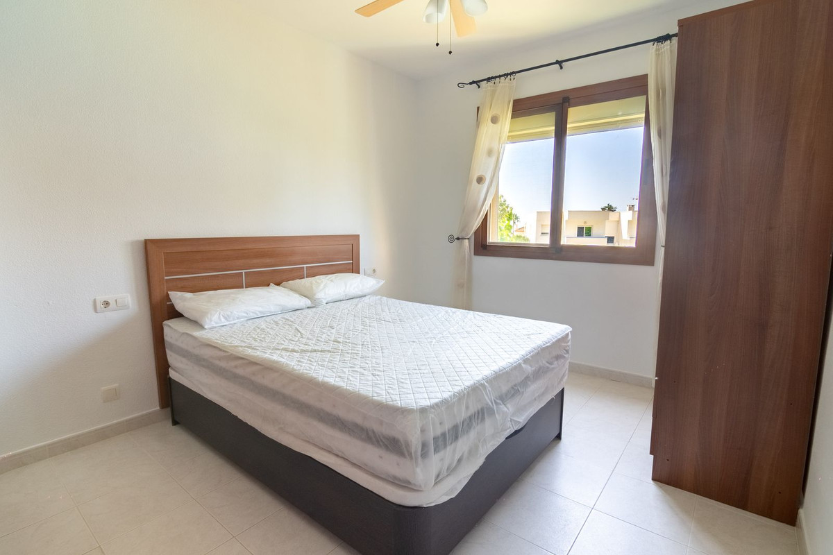 This first-floor apartment features a spacious, fully equipped kitchen and a bright south-facing living room with access to a sunny private terrace offering beautiful views of the community gardens and partial sea views. The perfect spot to enjoy at any time of the day.