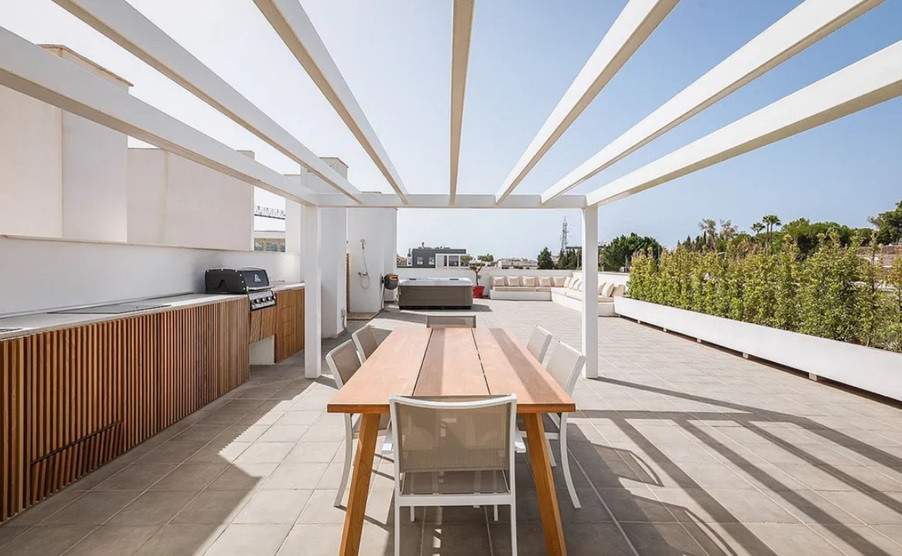 Located in a recently built development, in a prime position just steps from the center of San Pedro de Alcántara, this elegant penthouse combines modern design, comfort, and an unbeatable location, surrounded by all amenities: charming cafés, supermarkets, pharmacies, and schools.