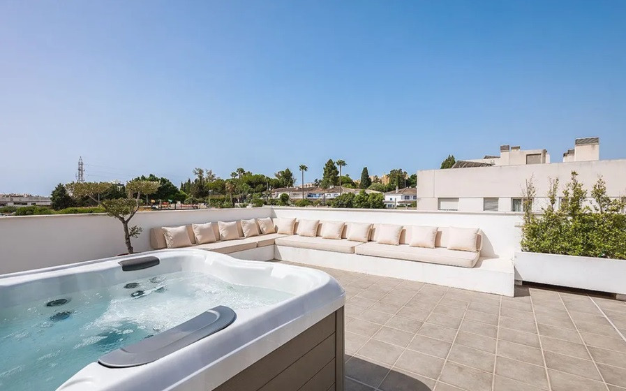 The highlight of this home is its spectacular 150 m² private solarium, boasting panoramic views of La Concha mountain. With its jacuzzi and barbecue area, it becomes the perfect space for family gatherings, entertaining guests, or simply enjoying the Mediterranean sun all year round.
