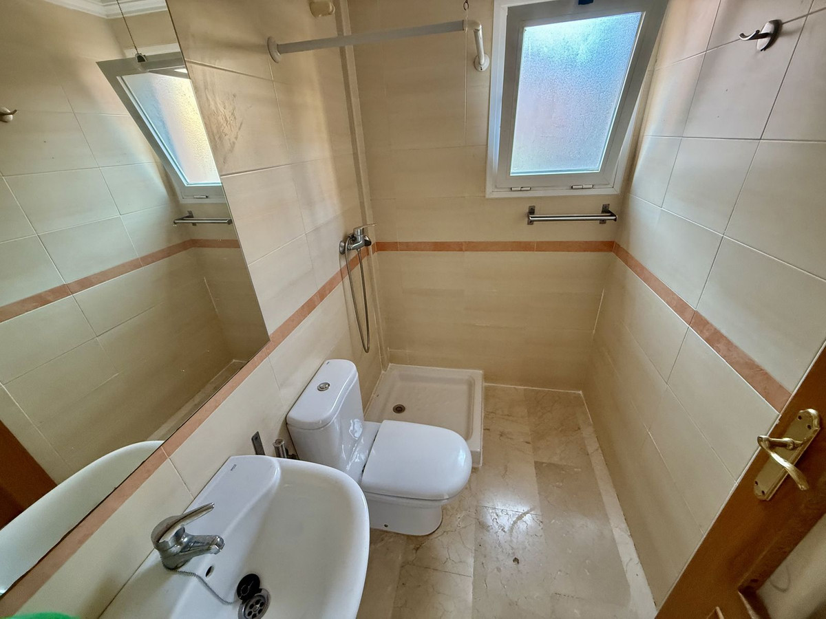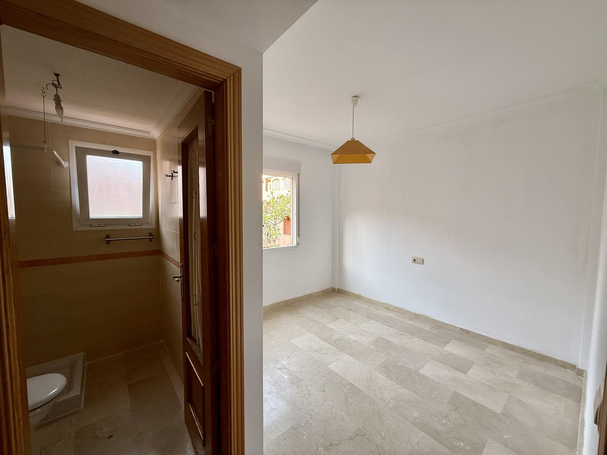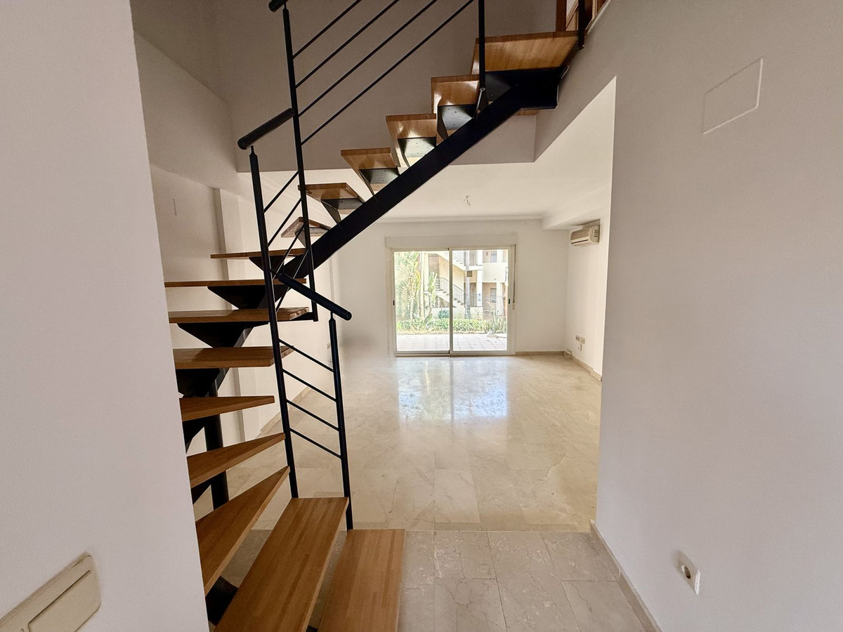Duplex bas de gamme à Riviera del Sol, d'une superficie de 90 m², réparti sur 45 m² au rez-de-chaussée et 45 m² à l'étage. Le rez-de-chaussée comprend un salon-salle à manger avec accès à un jardin privé, des toilettes, une buanderie et une cuisine séparée non équipée, avec possibilité d'intégration au séjour. À l'étage, vous trouverez deux chambres avec placards intégrés, deux salles de bain complètes avec fenêtres (l'une avec baignoire et l'autre avec douche), un placard intégré supplémentaire dans le couloir et une terrasse avec vue latérale.