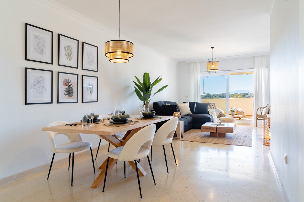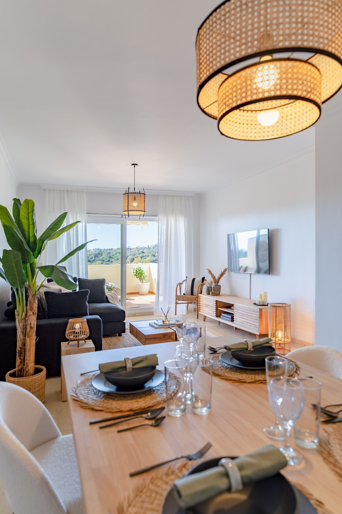 Bright and spacious 2-bedroom, 2-bathroom apartment in the exclusive gated community of Santa Maria Green Hills. It features a large living room with access to a generous terrace, enjoying open and lateral sea views.