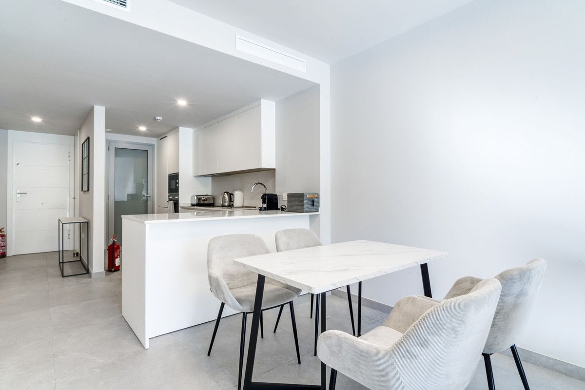 Spectacular two bedroom ground floor apartment in the brand new gated community Estrella Del Mar, Marbella. This beachside community is only 200m from the beach and in a privileged location close to services, leisure facilities, shops and restaurants. The community offers communal swimming pools, a gym and co working area. The property has an open plan living and dining area with access to a private terrace and garden; fully fitted open plan kitchen with laundry area; master suite with access to the terrace; guest bedroom; and a guest bathroom. Other features include a private parking space, storeroom, hot and cold air conditioning, electric blinds and full domotic system.