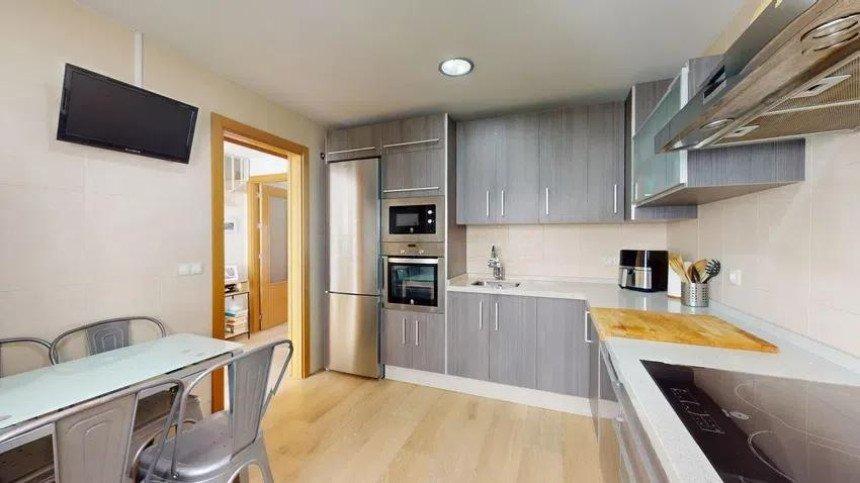 Le point fort de cet étage est le salon-salle à manger de 30 m², doté d'une cheminée à granulés, créant une atmosphère moderne et chaleureuse baignée de lumière naturelle. De là, on accède à une seconde terrasse de 25 m² avec barbecue, idéale pour les réunions de famille ou les soirées d'été entre amis. Cette terrasse communique directement avec les espaces communs, qui comprennent des jardins et deux piscines (une pour adultes et une pour enfants).