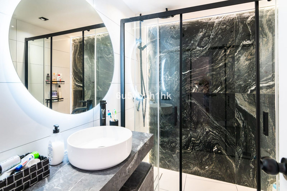 El Paraiso – À deux pas du chic D-Alicia Café et à seulement 300 m de plages paisibles et presque privées, ce penthouse avant-gardiste de trois chambres et deux salles de bains incarne le raffinement méditerranéen moderne. D'une superficie d'environ 155 m², il présente des intérieurs audacieux de style galerie où contrastes saisissants noir et blanc, parquet et lumière naturelle abondante créent une exposition de style en constante évolution. Une élégante cuisine en granit noir s'intègre harmonieusement à un salon-salle à manger ouvert conçu pour des réceptions chics, tandis que deux salles de bains d'inspiration spa, dont une avec une baignoire profonde, offrent un confort optimal. Couronnée par une terrasse privée sur le toit carrelée de Saltillo, la résidence invite aux dîners au coucher du soleil, aux réunions sous les étoiles et à la vie en plein air en toute simplicité. Entouré de restaurants réputés, de bars à vin et de boutiques de créateurs, ce penthouse est plus qu'une simple maison : c'est un style de vie soigné pour l'acheteur sophistiqué en quête d'élégance, d'audace et d'inspiration au quotidien.