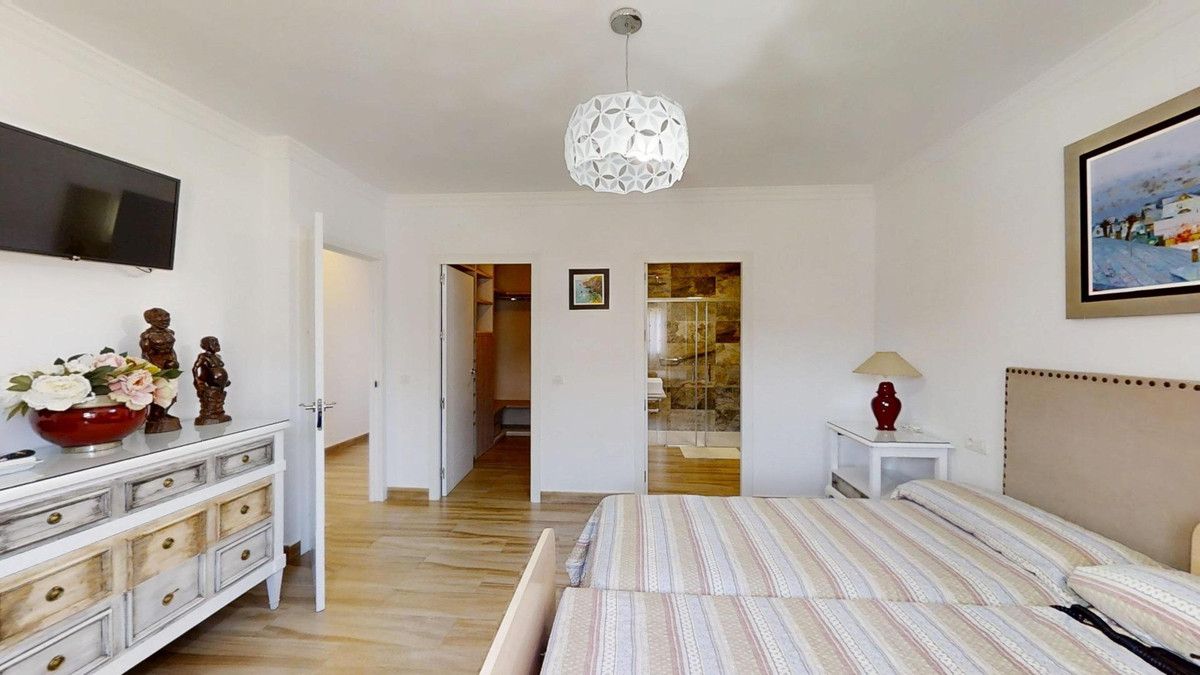 Chambre principale avec dressing élégant et salle de bain attenante, créant une retraite privée haut de gamme.