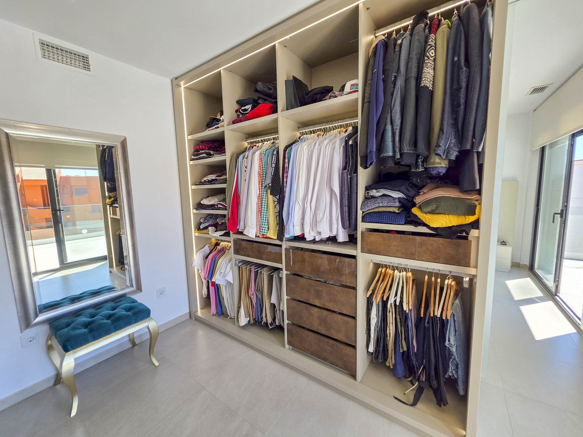 La propriété offre une surface construite de 168 m², répartie en espaces ouverts et lumineux. Elle dispose de trois grandes chambres et de trois salles de bain complètes. Bien que la propriété ait été initialement conçue pour quatre chambres, elle peut facilement être aménagée si besoin. La chambre principale comprend deux grands dressings, offrant un confort optimal et un espace de rangement généreux.
