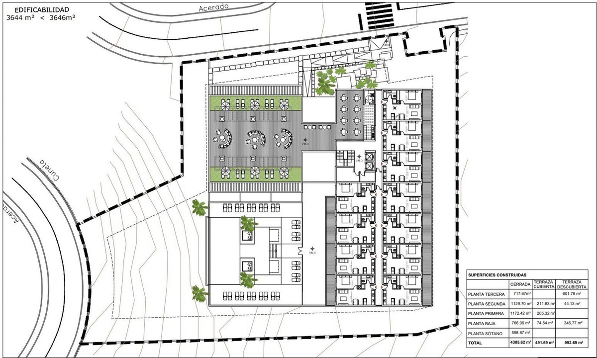 Il s'agit d'un terrain destiné à un usage d'équipement/commercial, d'une superficie totale de m² et de 3 650 m² de surface constructible, avec un projet viable pour la construction de jusqu'à 51 appartements touristiques.