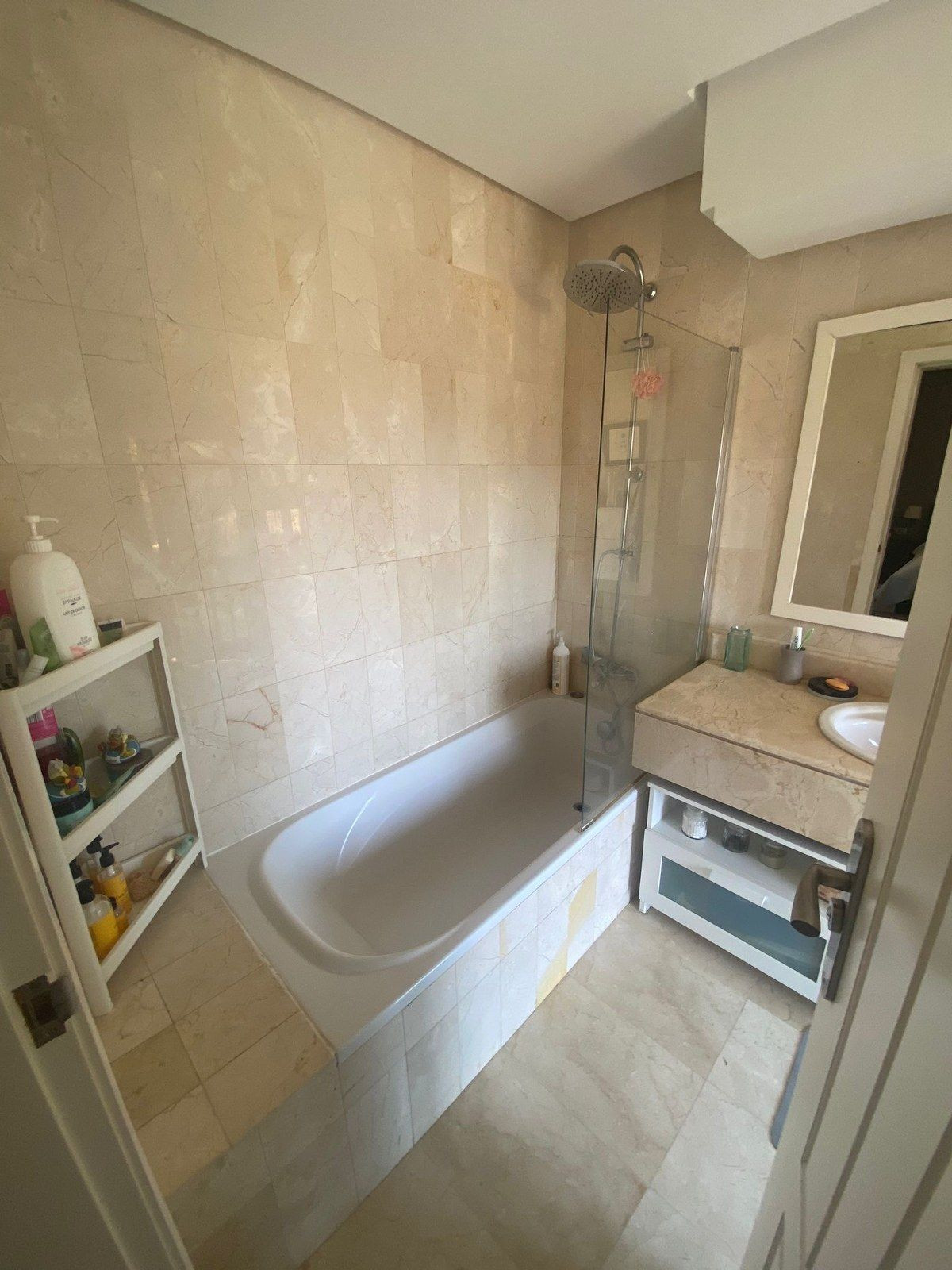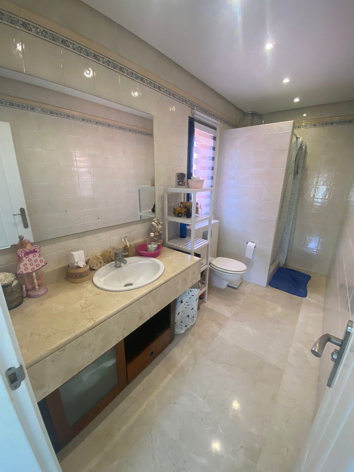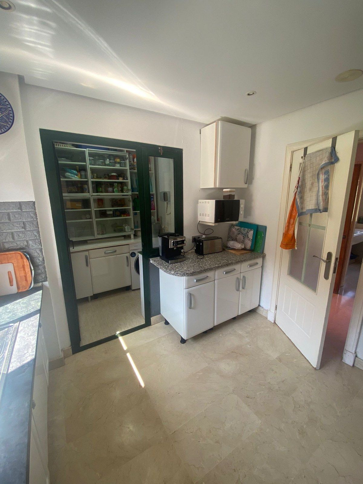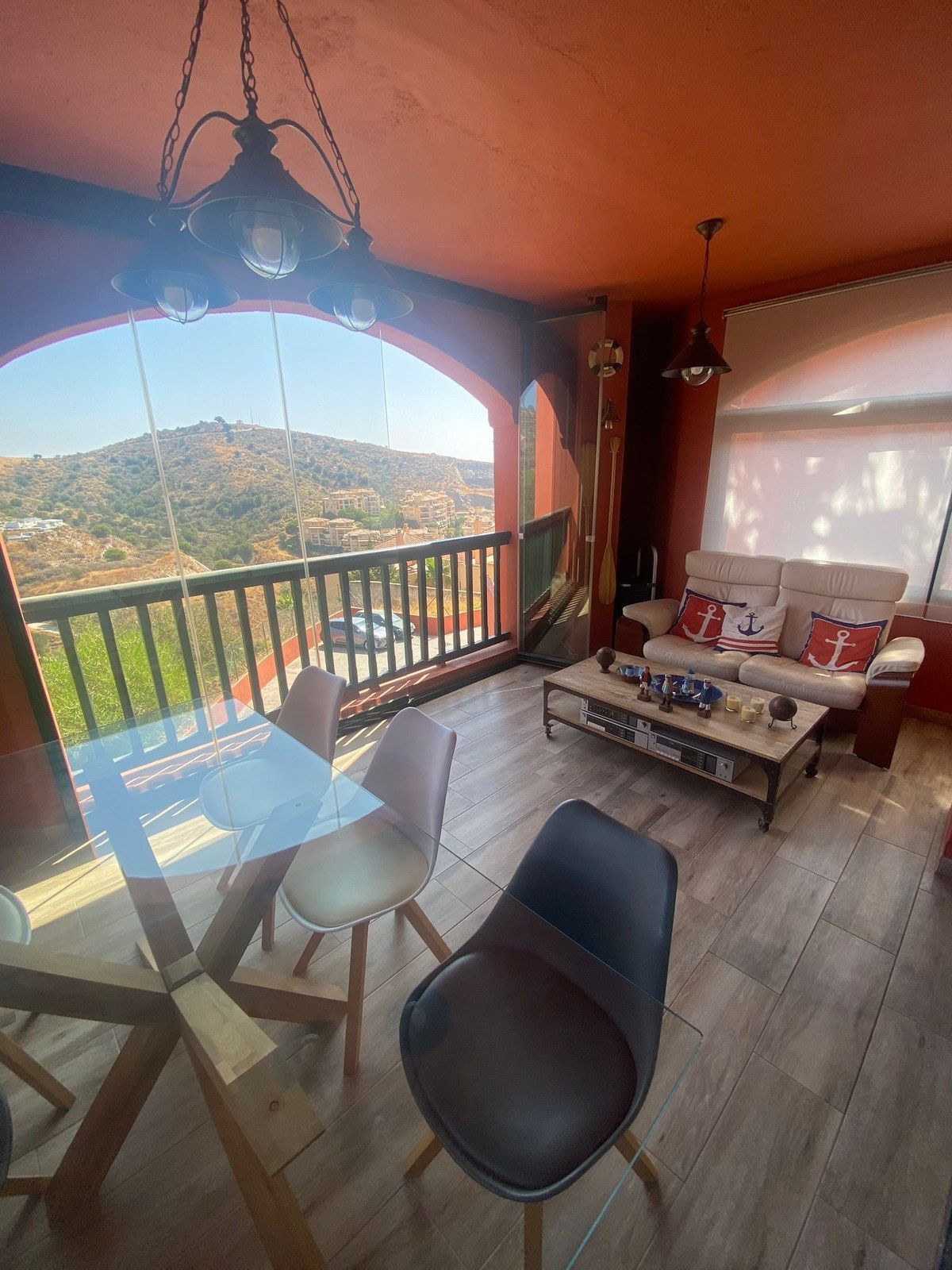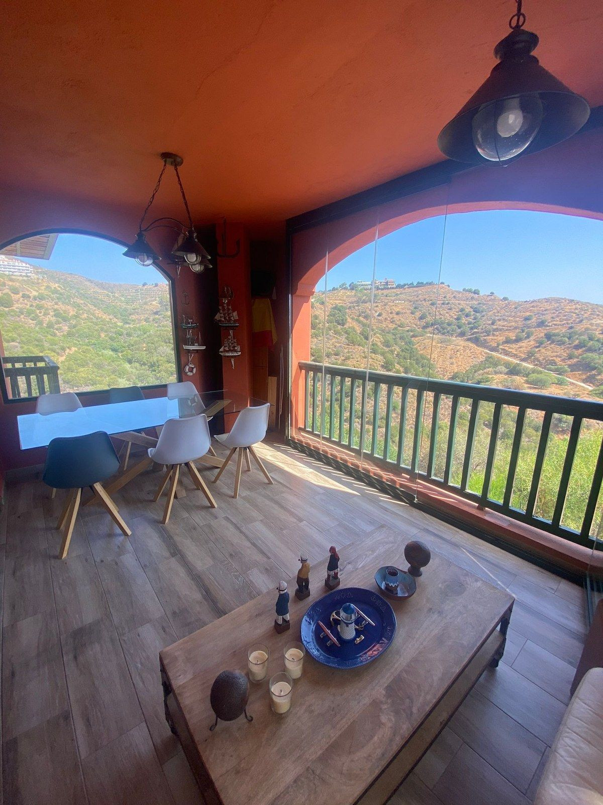 Entrée privée au rez-de-chaussée, vous disposez d'un WC invités, d'une cuisine spacieuse avec buanderie séparée, d'une 3ème chambre avec balcon privé, d'un grand salon/salle à manger qui donne sur la grande terrasse couverte avec des baies vitrées pliantes intégrées, ce qui permet de dîner sur la terrasse pendant les mois d'hiver également, d'un débarras privé caché sur la terrasse.