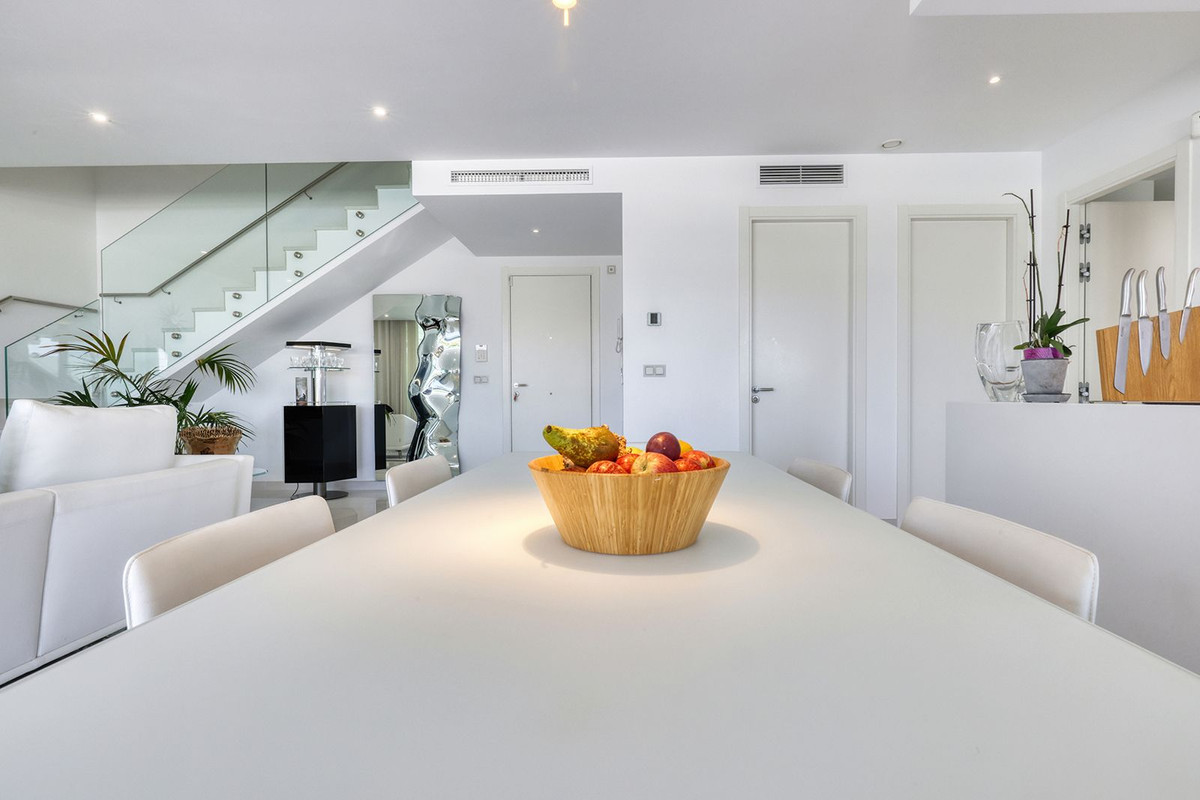 Luxueux appartement duplex de 4 chambres et 3 salles de bains, situé près de Benahavis. Situé au premier étage, il bénéficie d'un accès direct depuis l'entrée. Dès votre arrivée, vous serez immédiatement séduit par la vue magnifique et l'immense terrasse, véritable espace de vie extérieur. Séjour, cuisine ouverte, salle à manger, buanderie et toilettes invités. À ce niveau se trouve également une grande chambre double avec salle de bains attenante et nombreux rangements.