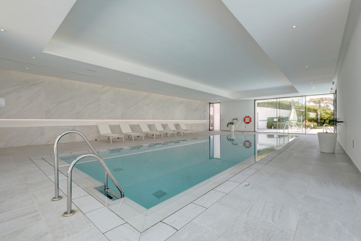 À l'étage se trouvent trois autres chambres, dont la suite parentale avec grande salle de bains attenante et de nombreux placards. Chaque chambre donne sur la terrasse supérieure offrant une vue dégagée sur les montagnes. Les deux autres chambres partagent une grande salle de bains. La résidence est réputée pour ses magnifiques jardins et sa grande piscine d'eau salée. En hiver, la piscine intérieure est ouverte pour vous permettre de vous baigner toute l'année. La propriété comprend également quatre places de parking souterraines et un grand cellier.