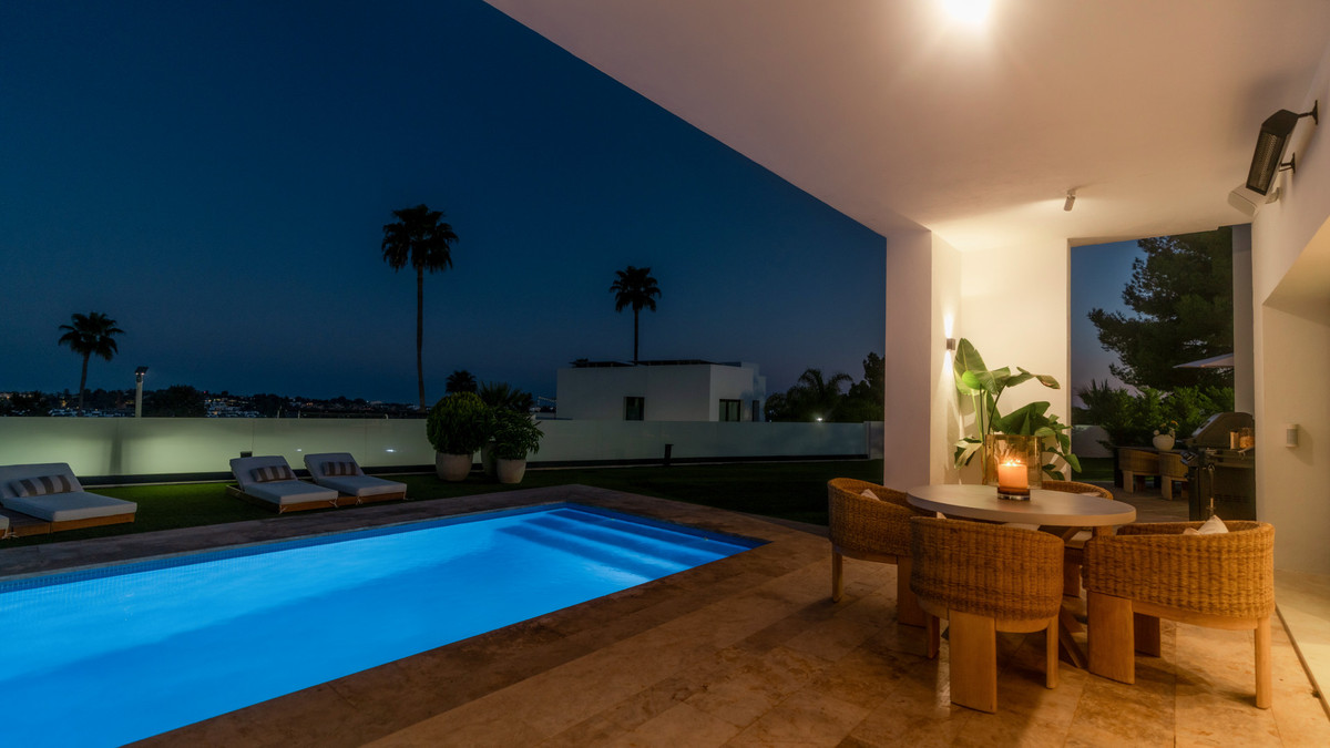 Cette villa d'angle, située dans les résidences sécurisées d'Atalaya Fairways et de La Alquería, allie modernité, fonctionnalité et intimité. Située juste à côté du portail de sécurité, Atalaya Fairways est surveillée par un gardien et des caméras de surveillance réparties dans toute la résidence, pour une tranquillité d'esprit absolue. La Alquería, quant à elle, assure un niveau de sécurité supplémentaire grâce à des patrouilles régulières, ce qui en fait l'une des maisons les plus sûres de la région. Son emplacement en angle renforce encore l'intimité, la rendant idéale pour une vie de famille ou comme résidence secondaire.