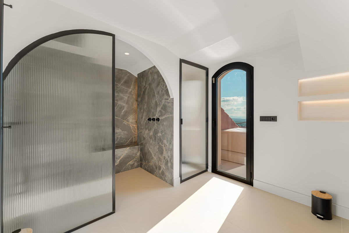 Le duplex s'étend sur deux étages. Le rez-de-chaussée abrite trois chambres magnifiquement conçues, chacune avec salle de bain attenante alliant style et commodité. Des toilettes invités supplémentaires assurent la fonctionnalité des lieux. L'étage supérieur est consacré à la suite parentale, où une terrasse privée et un jacuzzi créent un havre de paix et d'intimité, agrémenté d'une vue imprenable sur Benahavís et le littoral. Au total, la propriété offre quatre chambres, dont une aménagée en bureau, trois salles de bain et des toilettes invités, ce qui en fait un logement idéal pour les familles ou ceux qui aiment recevoir.