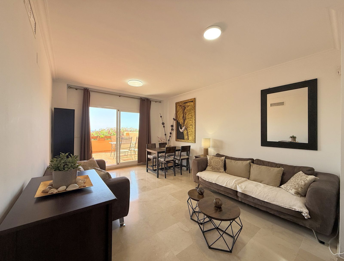 Situé à Casares Costa, un quartier en plein essor entouré de nature, de prestigieux golfs tels que Finca Cortesin et Doña Julia, et de résidences exclusives, ce confortable appartement en rez-de-chaussée se distingue par sa spacieuse terrasse avec vue partielle sur la mer et son cadre paisible et privé, idéal pour profiter du climat méditerranéen toute l'année. À seulement 4 minutes en voiture des ports de plaisance de La Duquesa et d'Estepona, et à proximité du futur hôtel Hilton, son emplacement offre un accès privilégié aux plages de sable, à une charmante promenade, aux restaurants, aux bars de plage et aux espaces de loisirs. En parfait état et prêt à emménager, ce bien fonctionnel de plain-pied comprend deux chambres spacieuses, deux salles de bains, un séjour lumineux avec accès direct à la grande terrasse privée et une cuisine rénovée avec buanderie récemment construite, offrant espace et confort supplémentaires. Orienté sud-ouest, l'appartement bénéficie d'une lumière naturelle tout au long de la journée et d'une atmosphère chaleureuse et relaxante. Située dans une résidence sécurisée avec accès piétonnier à la plage en environ 12 minutes, elle dispose de jardins tropicaux luxuriants, de six piscines (dont une ouverte toute l'année), d'un service de conciergerie 24h/24, de la climatisation réversible, d'un parking souterrain et d'un cellier. De plus, elle dispose d'une licence touristique valide, ce qui en fait un investissement idéal pour un usage personnel ou pour des locations saisonnières ou à long terme. Une opportunité unique à ne pas manquer !