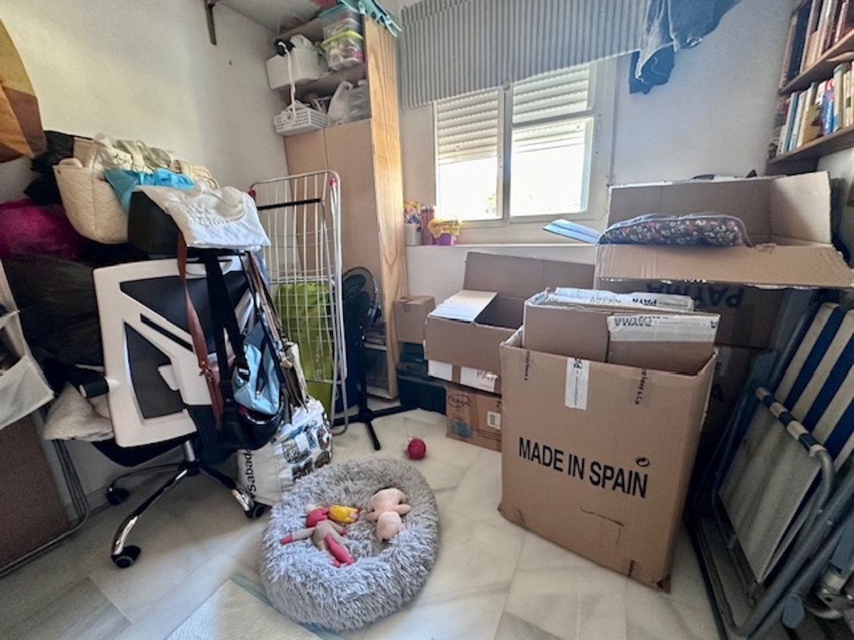 La troisième chambre, légèrement plus petite, avec une fenêtre, est très lumineuse et sert actuellement de rangement. Idéale pour une chambre d'enfant ou d'étudiant.