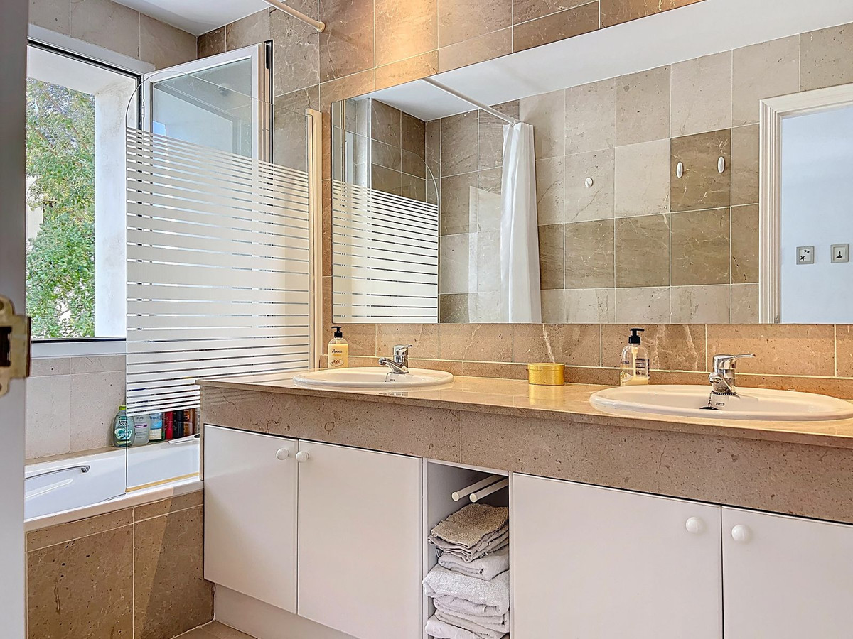 La cuisine semi-ouverte, soigneusement conçue et dotée d'un passe-plat pratique, allie fonctionnalité et charme, idéale pour recevoir tout en restant en contact avec la salle à manger. Les deux chambres, aux dimensions généreuses, disposent d'élégantes salles de bains attenantes, garantissant confort et intimité aux résidents comme aux invités.