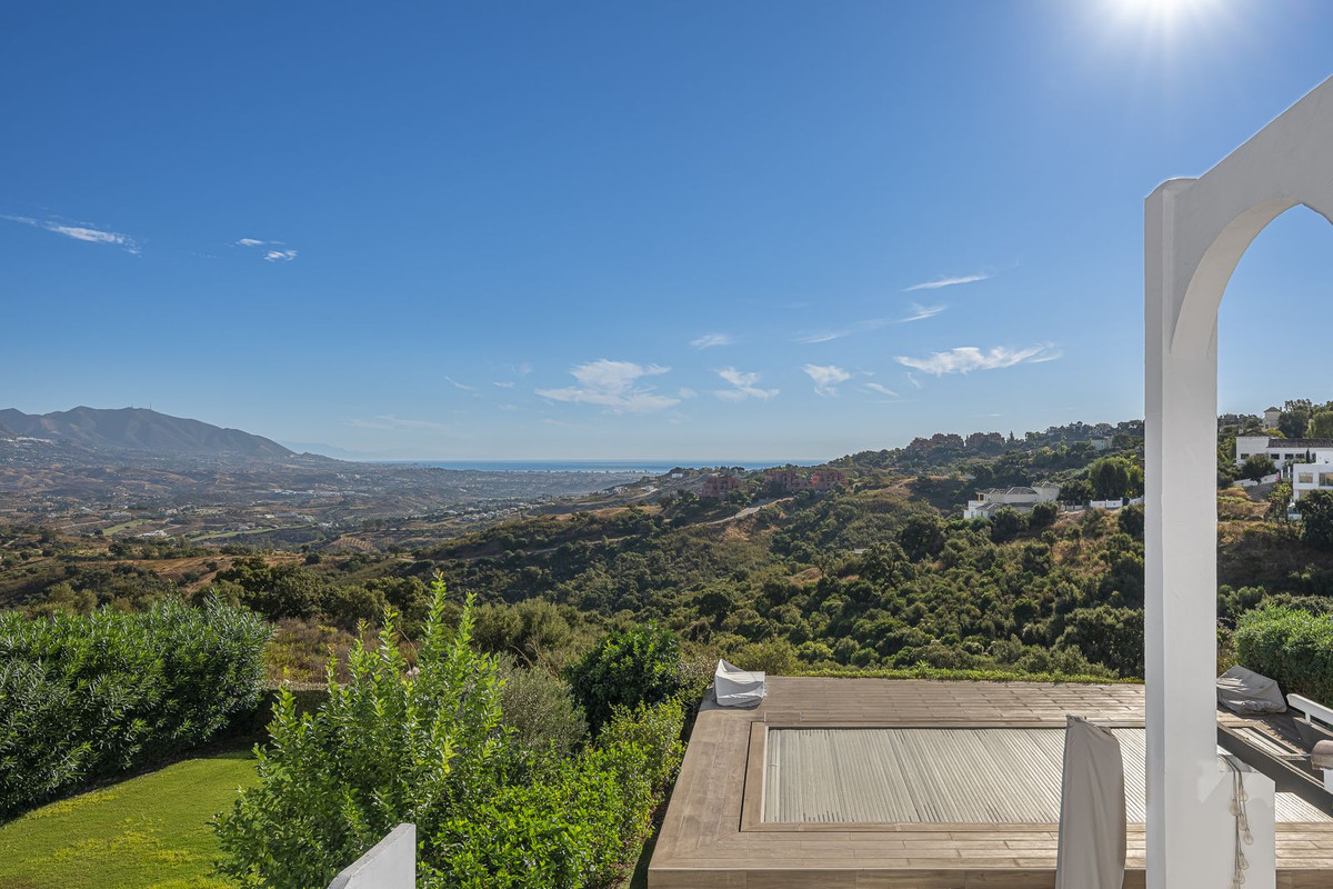 Découvrez la maison de vos rêves dans les collines d'Elviria Alta / La Mairena, où des vues à couper le souffle sur la mer et la montagne rencontrent la sérénité de la nature et l'élégance de la vie méditerranéenne.