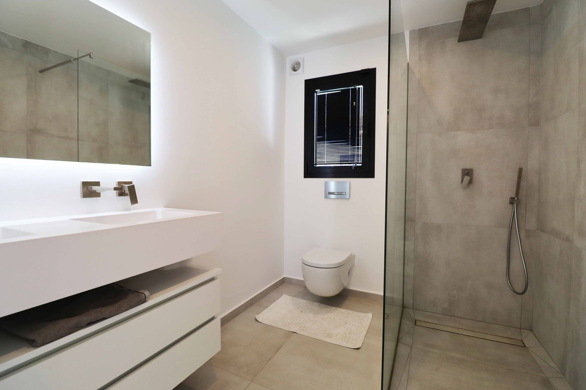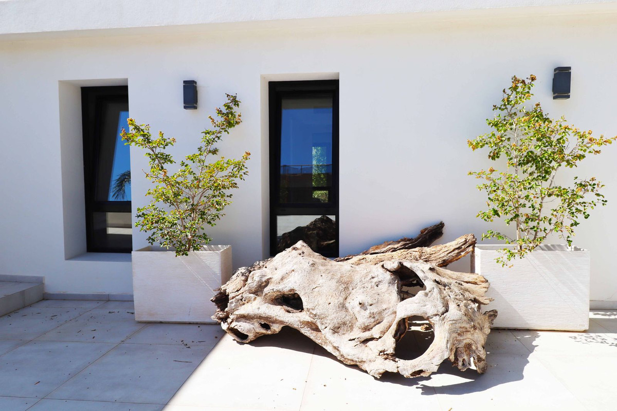 Une villa nouvellement construite avec vue sur la mer, piscine à débordement et terrasses panoramiques, à quelques pas de la mer.
