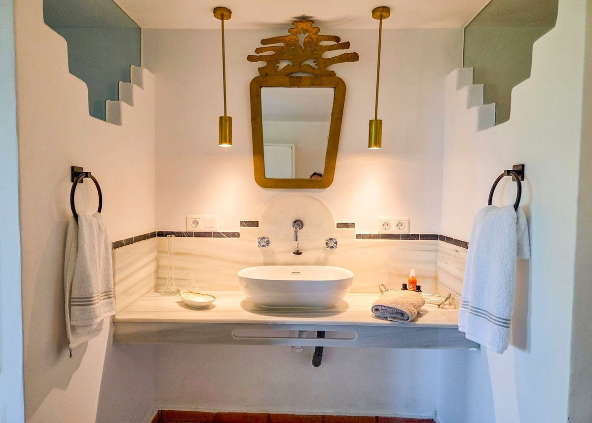 La villa comprend trois chambres spacieuses, chacune avec sa propre salle de bain, tandis que la suite parentale comprend également un coin salon privé. Au rez-de-chaussée, un appartement indépendant offre confort et indépendance aux hôtes, avec sa cuisine et sa terrasse privatives.