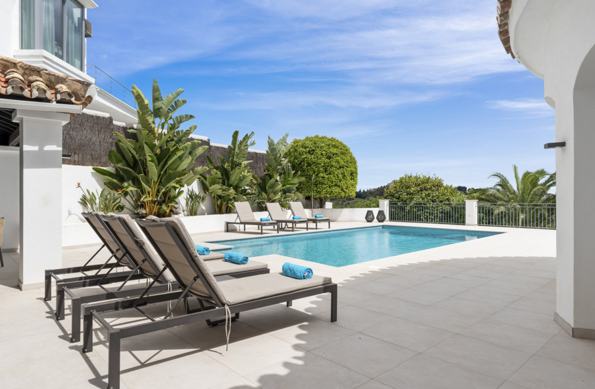 Cette villa de style andalou, entièrement rénovée selon les plus hauts standards de qualité, allie authenticité et élégance moderne. Idéalement située dans le quartier d'El Paraíso Alto, à Benahavís, elle offre une vue panoramique imprenable sur la mer et le golf, à quelques minutes de Marbella, Puerto Banús et Estepona.