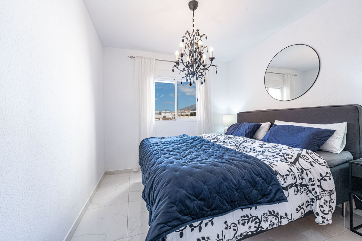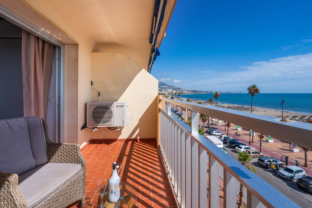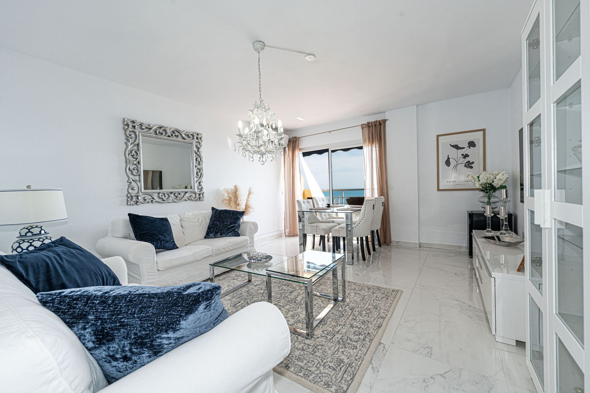 L'appartement, fraîchement rénové, mesure 90 m². La cuisine, entièrement rénovée et équipée, dispose d'électroménagers encastrés neufs de haute qualité et de plans de travail en pierre. Le salon spacieux et lumineux peut accueillir une table à manger. Il donne également accès à une grande terrasse donnant directement sur la mer. Les deux chambres spacieuses et paisibles disposent de placards intégrés et offrent une vue sur les montagnes de Mijas. L'élégante salle de bains a également été récemment rénovée.