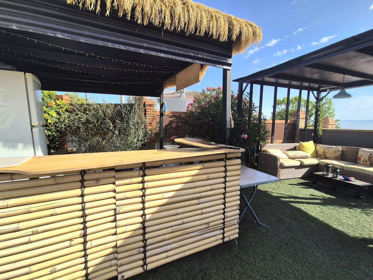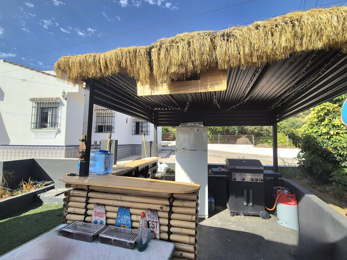 La propriété est située en haut de l'urbanisation. Elle est entièrement clôturée, accessible par un portail électrique coulissant ou une porte d'entrée. Elle dispose d'un grand parking pouvant accueillir au moins cinq voitures. Le terrain, presque plat, offre plusieurs coins salon et différents espaces à aménager selon vos envies. À gauche de la propriété, vous trouverez un agréable coin salon avec pergolas et une cuisine extérieure avec une jolie vue sur la vallée et une petite piscine. La propriété dispose de deux entrées : la porte d'entrée principale et une entrée arrière depuis le parking menant au couloir/cuisine.