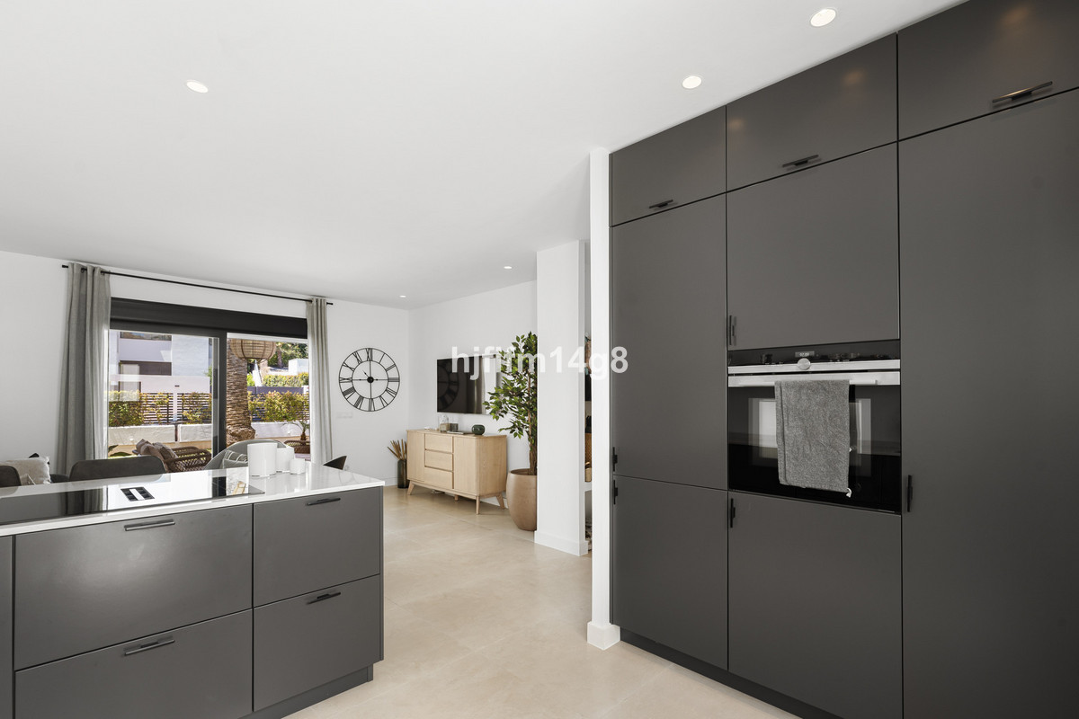 The apartment has been completely renovated to a high standard, featuring an open-plan kitchen seamlessly connected to the bright living and dining area. Next to the kitchen, a charming patio provides the perfect outdoor dining space with a barbecue area, ideal for enjoying Marbella’s warm climate. The living room opens onto a terrace and the garden area, creating a peaceful and relaxing atmosphere. The property offers one spacious bedroom with fitted wardrobes and a bathroom with a walk-in shower.