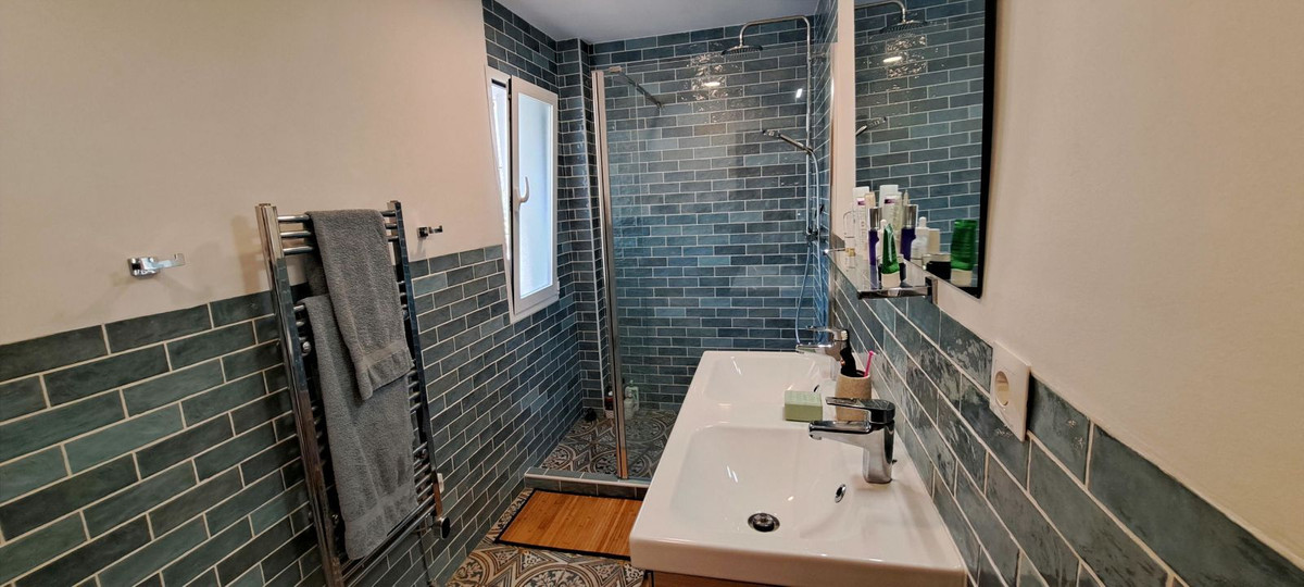 At the end of the corridor is the master bedroom. A beautiful spacious room with built-in wardrobes and air conditioning. Adjacent to this bedroom is a very spacious, modern and luxurious bathroom.